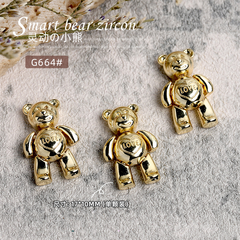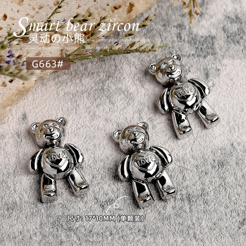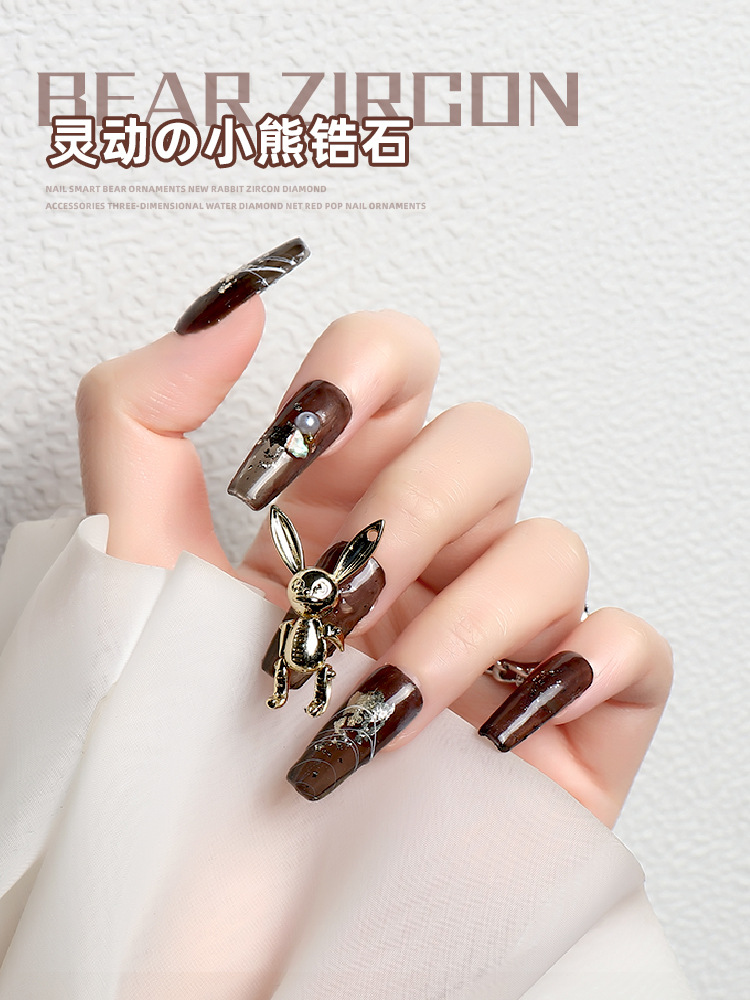 네일 아트 쥬얼리는 움직일 수 있습니다 곰 두개골 토끼 귀여운 고급 금속 2022 가을과 겨울 인기 입체 광선 요법 장식스토어 가기