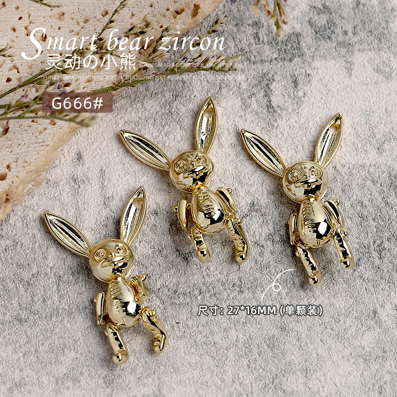 네일 아트 쥬얼리는 움직일 수 있습니다 곰 두개골 토끼 귀여운 고급 금속 2022 가을과 겨울 인기 입체 광선 요법 장식