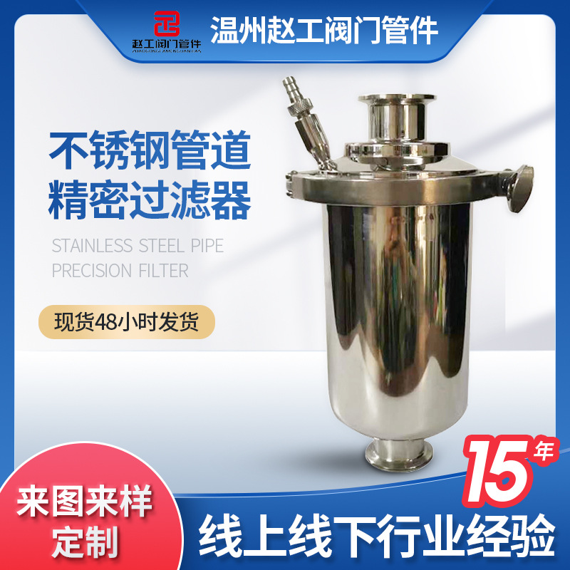 不锈钢直通管道过滤器-卫生级是除去液体和空气中少量固体颗粒的小型设备,可保护压缩机、泵、仪表和其它设备的正常工作,当流体进入置有一定规格的滤筒后其杂质被阻挡,而清洁的滤液和空气则由过滤器出口排出,当需要清洗时,只要将可拆卸的滤筒取出,处理后重新装入即可,因此,使用维护极为方便。