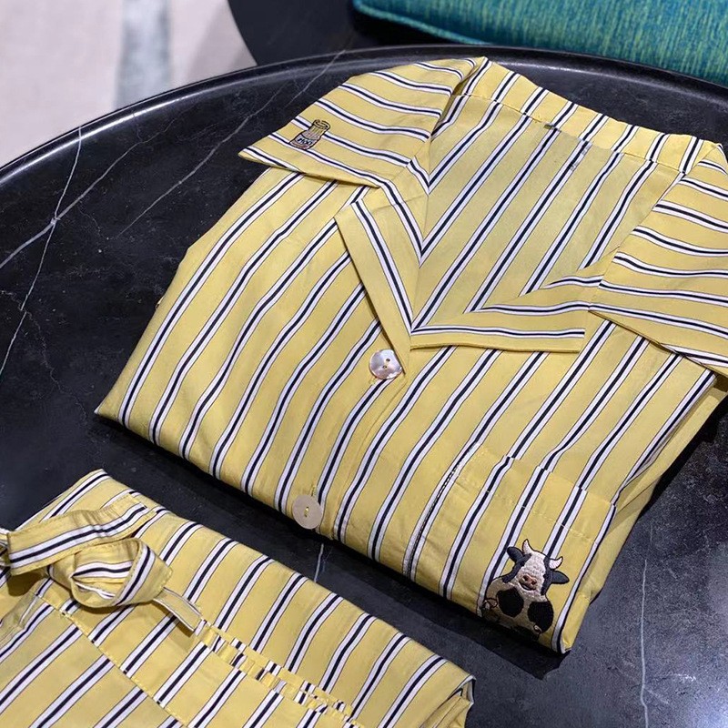 암소 커플 코튼 실크 잠옷 여성 2024 새로운 여름 남성 Ins 스타일 홈 의류 세트 봄과 가을 긴 소매스토어 가기