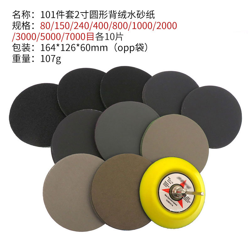 • 2 인치 라운드 백 벨벳 워터 사포 101 장 세트