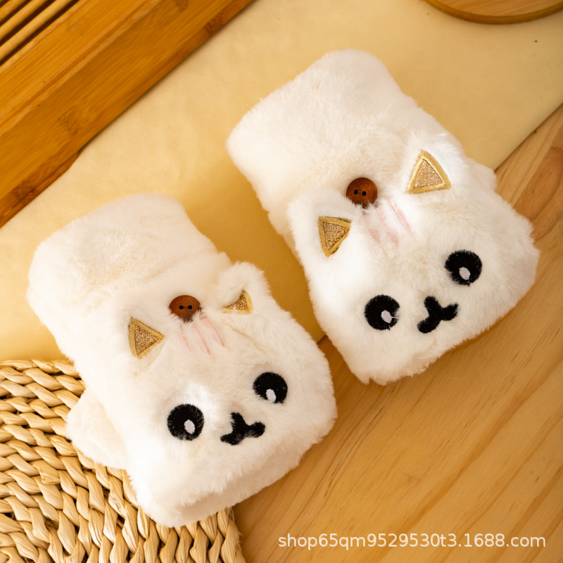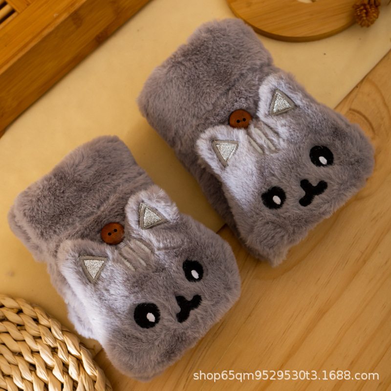 겨울 장갑 여자의 귀여운 따뜻한 방한 한국식 학생 기모 두꺼운 반 손가락 플립 이중 목적 터치 스크린 사이클링