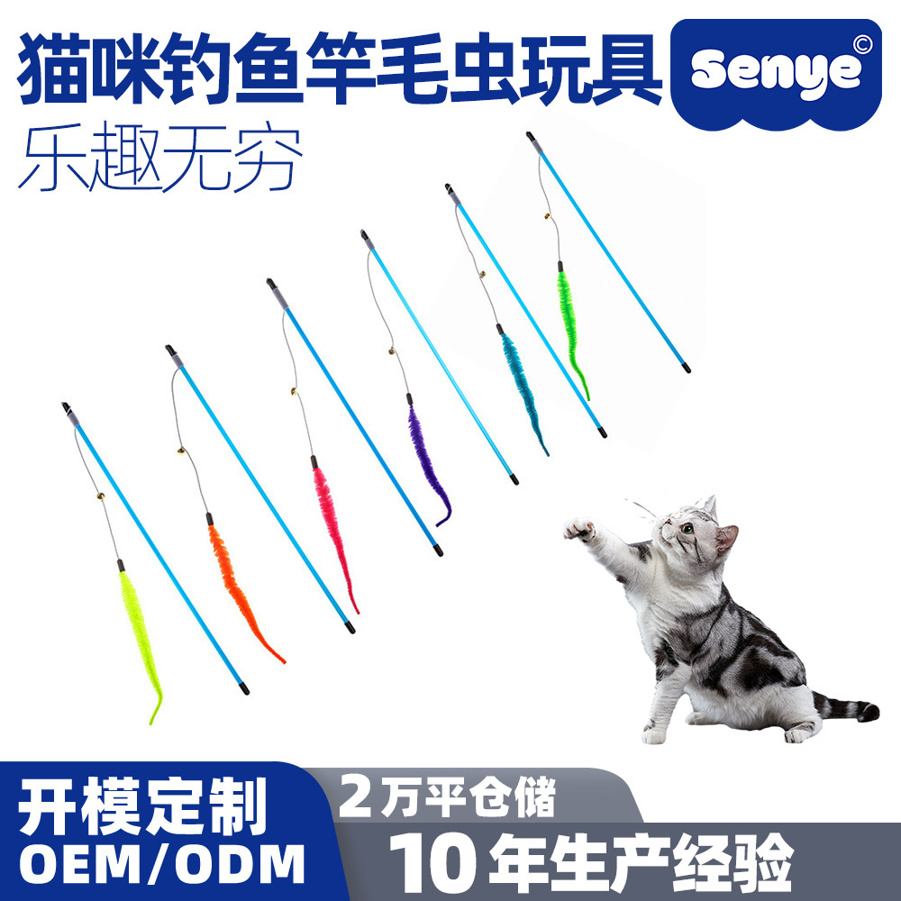 아마존 새로운 고양이 장난감 블루로드 낚싯대 애벌레 장난감 6 색 옵션 고양이 스틱 제조 업체 설정할 수 있습니다스토어 가기