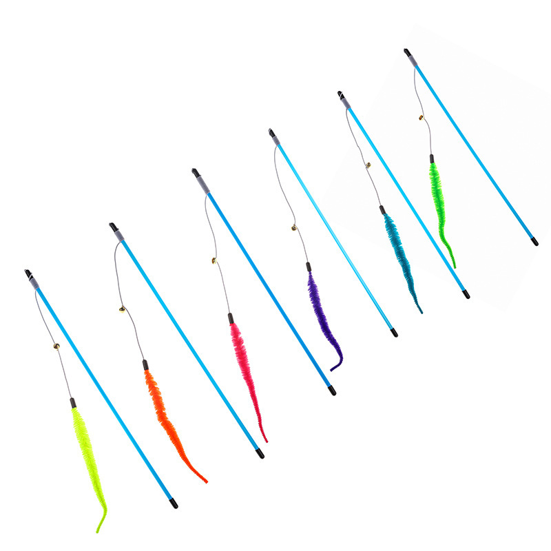 아마존 새로운 고양이 장난감 블루로드 낚싯대 애벌레 장난감 6 색 옵션 고양이 스틱 제조 업체 설정할 수 있습니다