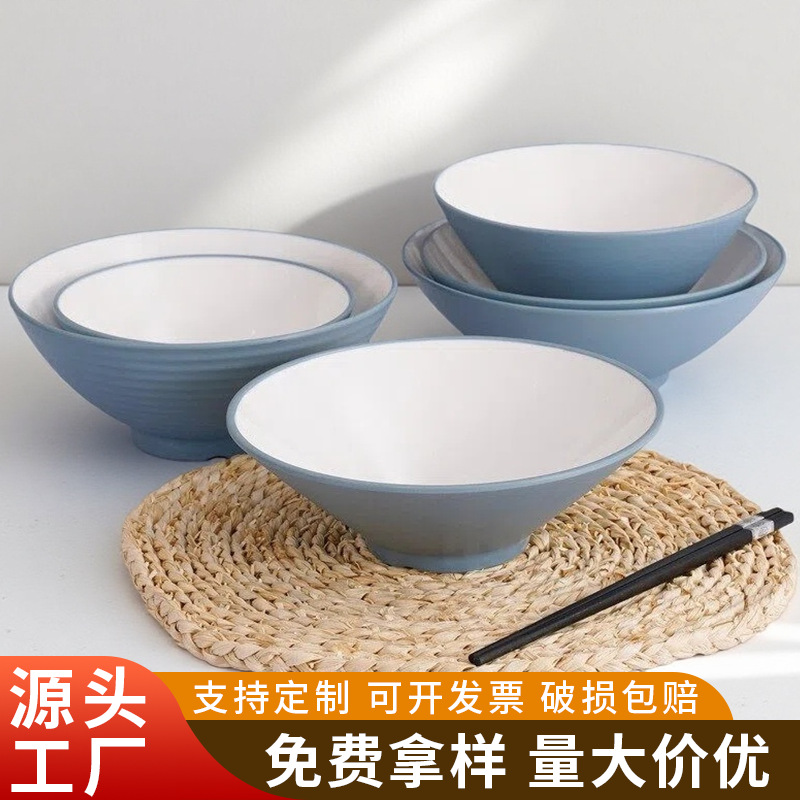 모조 도자기 멜라민 일본식 2 색 국수 그릇 말라탕 큰 그릇 두꺼운 플라스틱 수프 그릇 원형 상업용 쌀 국수 그릇 식기스토어 가기