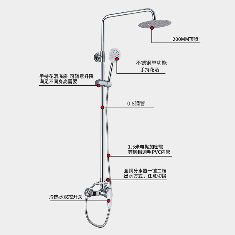 욕실 가정용 모든 구리 샤워 세트 화장실 가압 샤워 헤드 벽걸이 형 샤워 장치스토어 가기