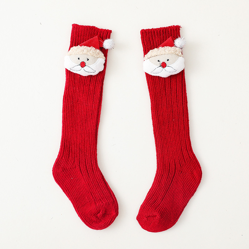 ins 어린이 크리스마스 양말 만화 종소리 무릎 위 긴 양말 스페인 신생아 양말 두꺼운 보온 양말