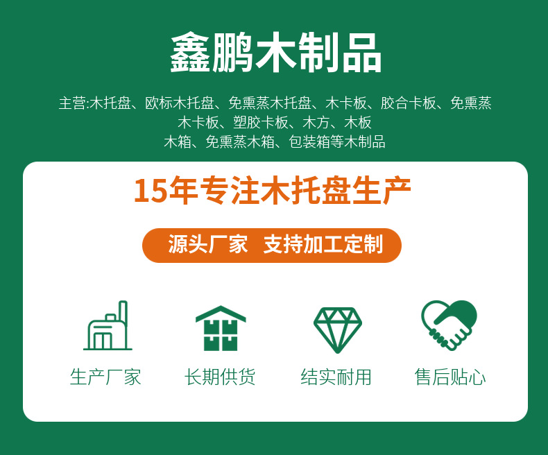제조업체는 단단한 목재 팔레트, 양면 포크 팔레트, 지게차 목재 팔레트, 방습 보드 바닥 팔레트를 공급합니다.