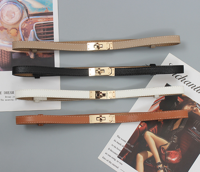 정품 가죽 잠금 조절 가능한 얇은 벨트 여성의 매칭 세트 재킷 모든 매치 유행 벨트 2 층 소가죽 작은 벨트스토어 가기