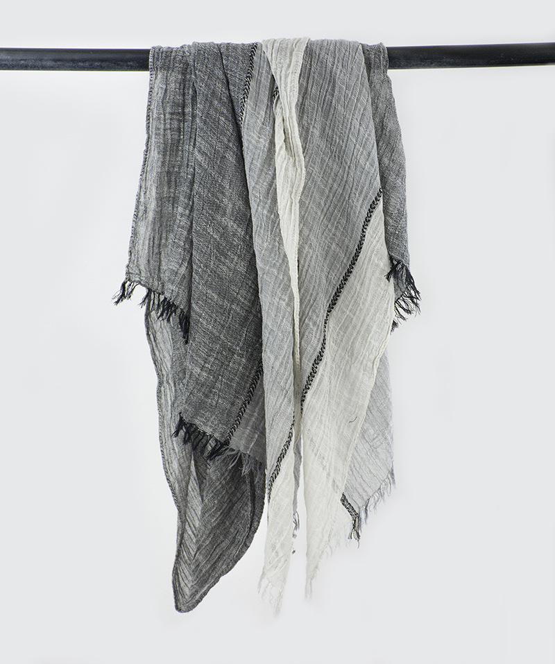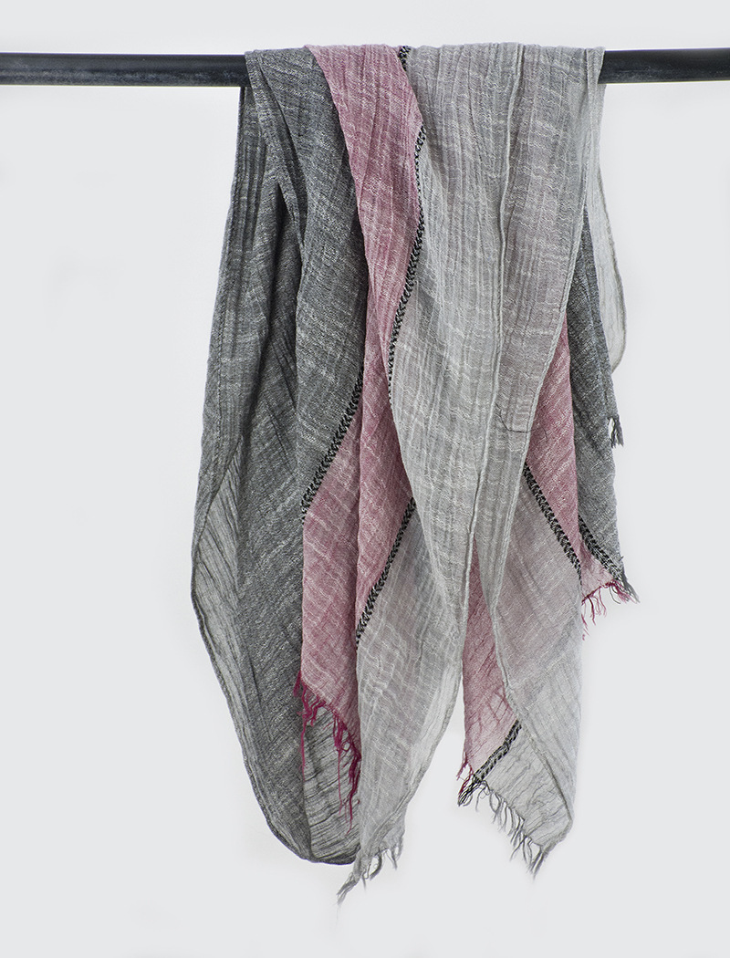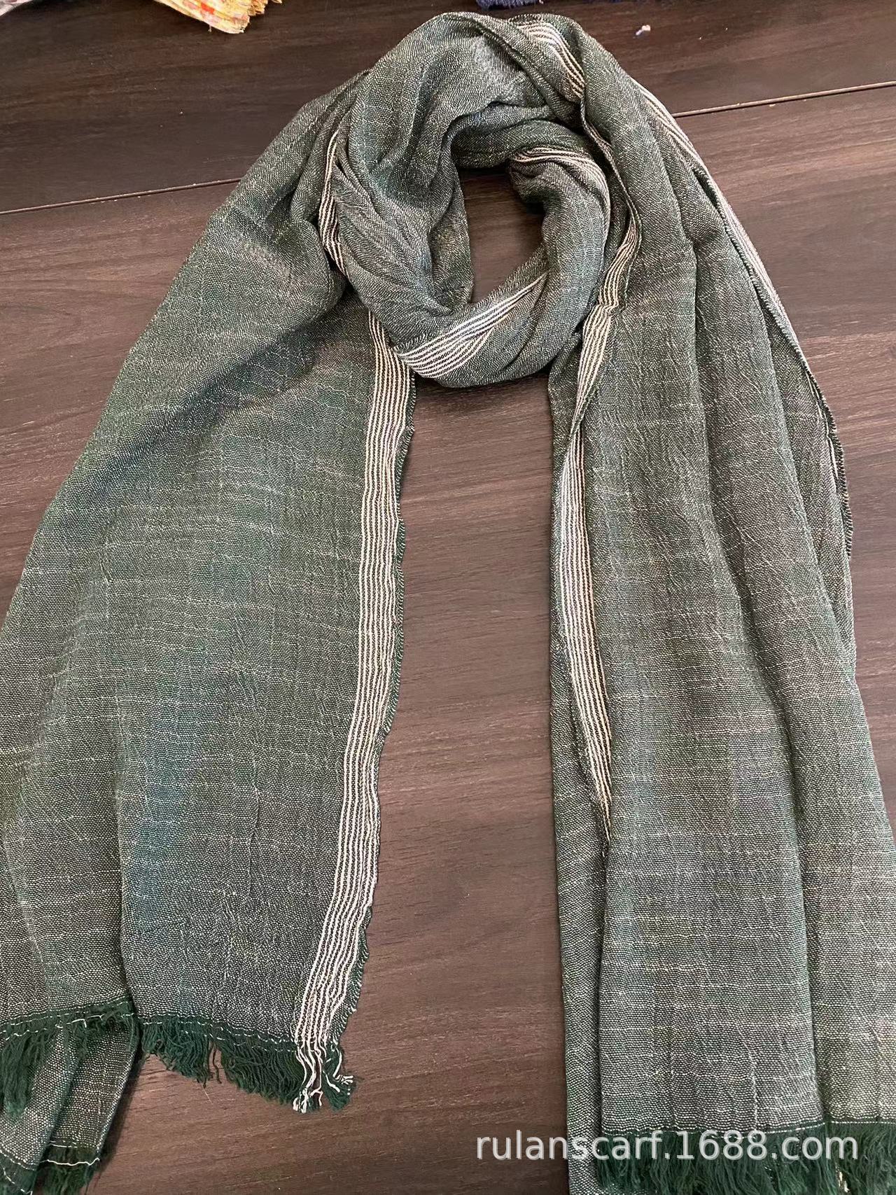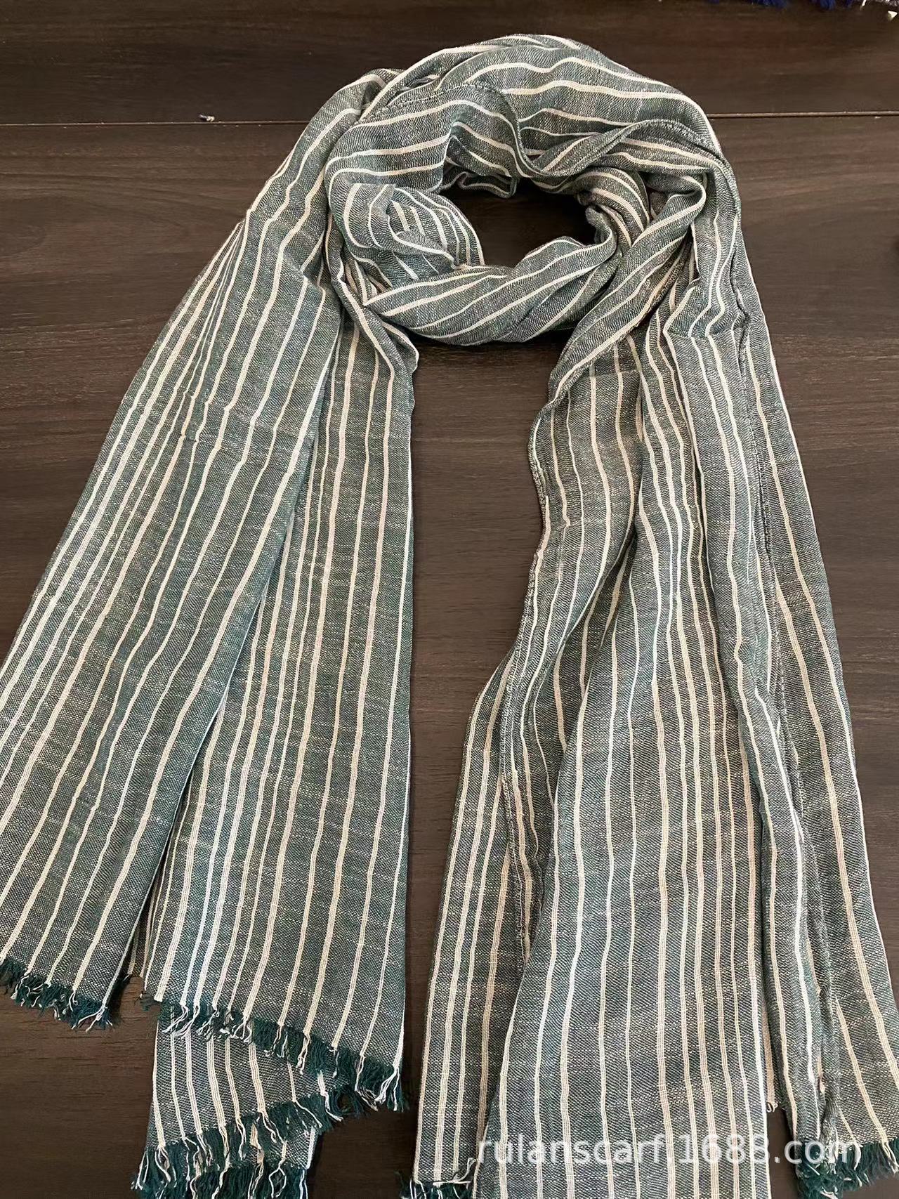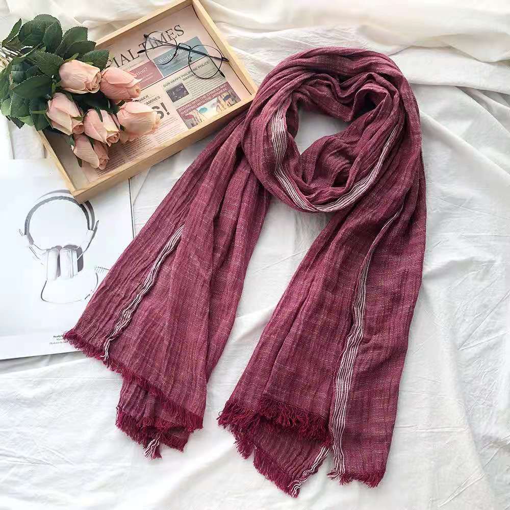 센녀 스타일 스카프 여성용 2025 봄 가을 얇은 스트라이프 면마 숄 프린지 주름 예술적 면 자외선 차단 스카프