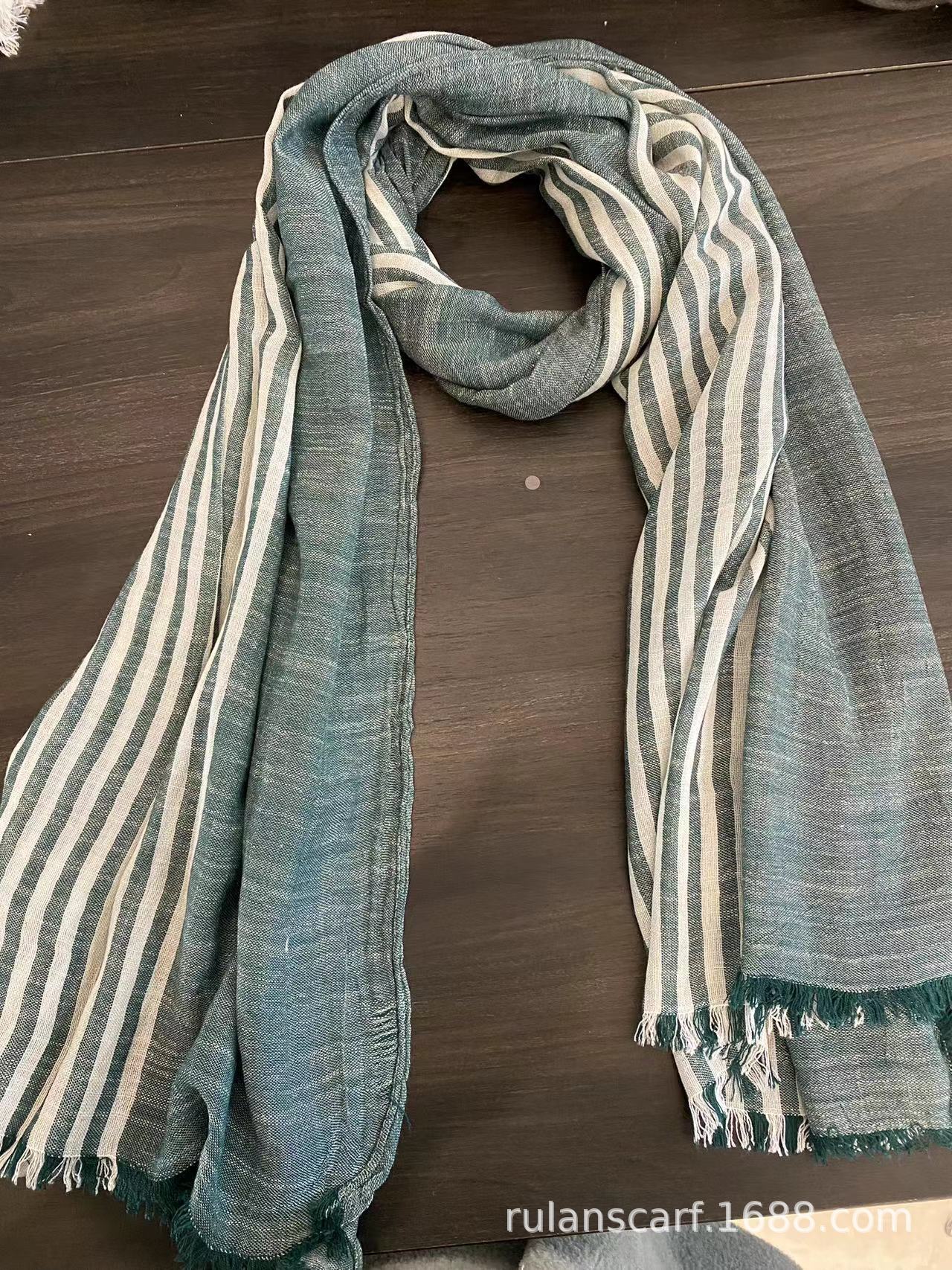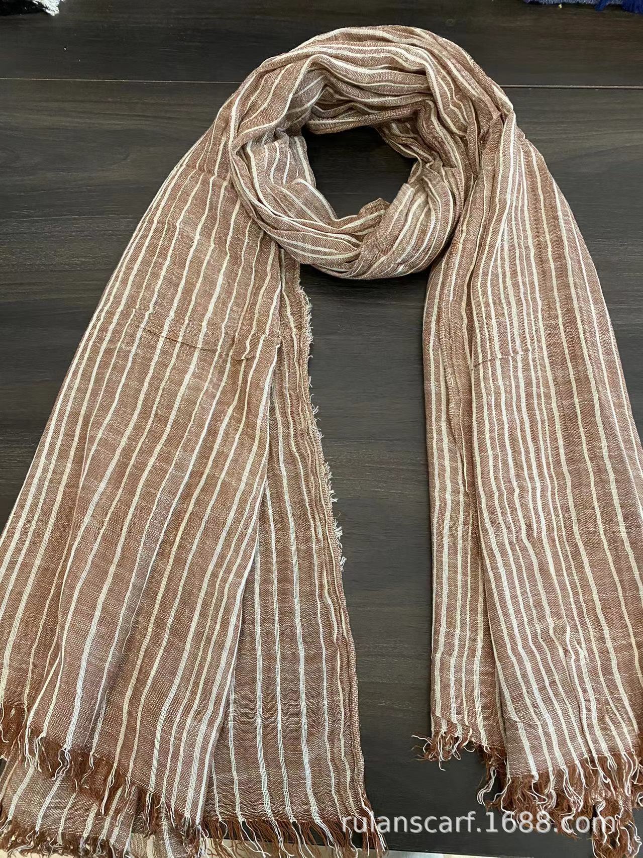 센녀 스타일 스카프 여성용 2025 봄 가을 얇은 스트라이프 면마 숄 프린지 주름 예술적 면 자외선 차단 스카프스토어 가기