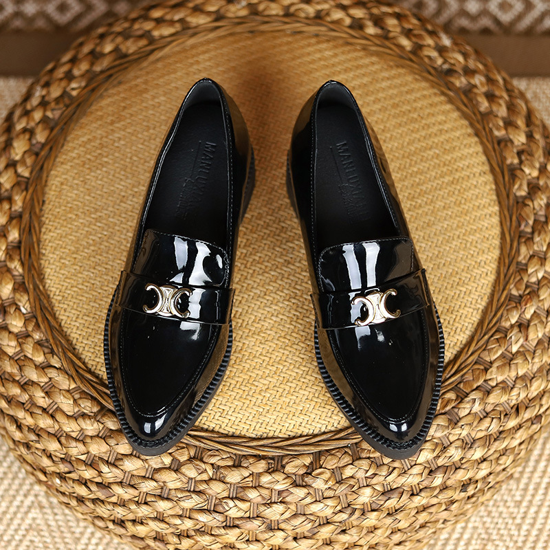 작은 가죽 신발 여성의 가을과 겨울 2022 트렌디 한 새로운 스타일 내부 높이 증가 싱글 레이어 신발 영국 스타일 로퍼 블랙 전문 작업 신발스토어 가기