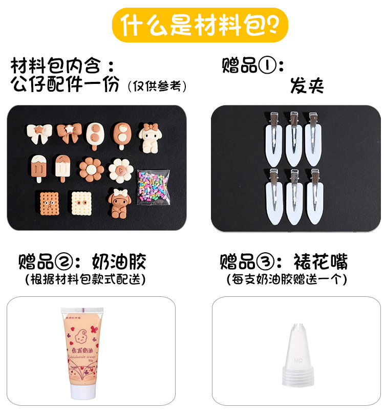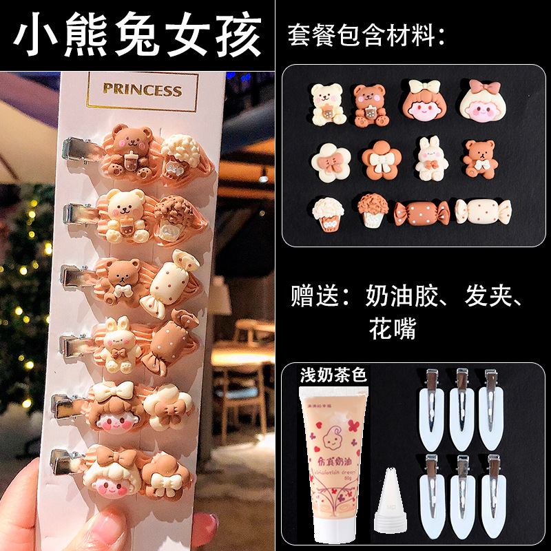 크림 젤 DIY 머리핀 수제 재료 가방 만들기 모자 만화 귀여운 우유 차 컬러 사이드 클립 앞머리 클립