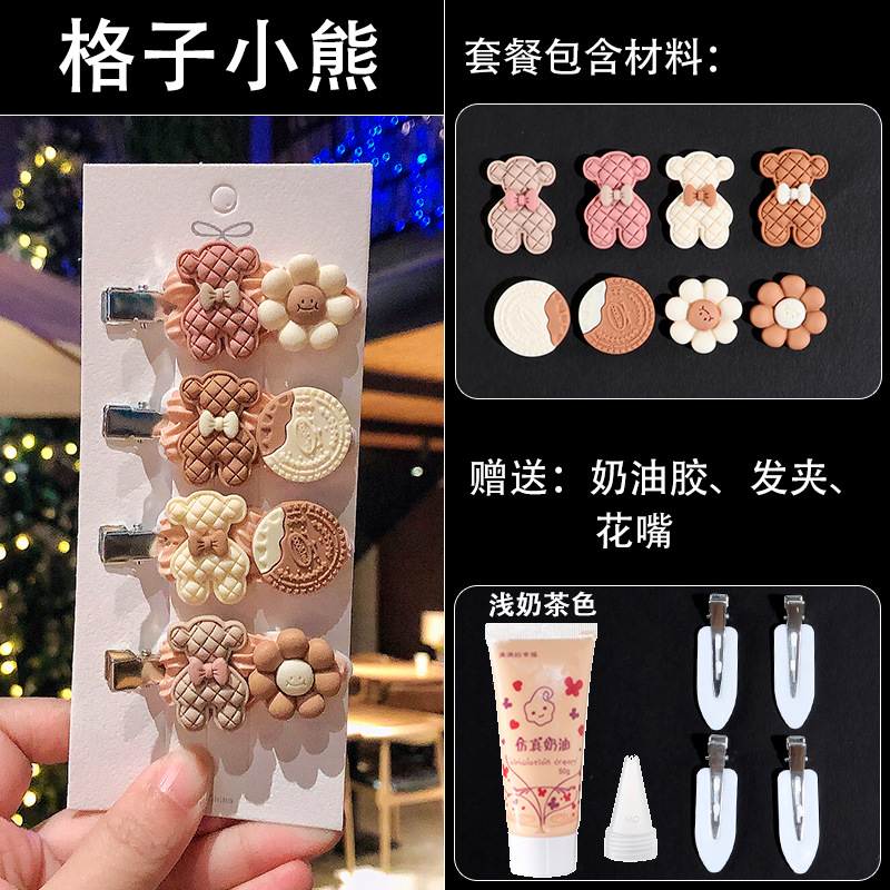 크림 젤 DIY 머리핀 수제 재료 가방 만들기 모자 만화 귀여운 우유 차 컬러 사이드 클립 앞머리 클립스토어 가기