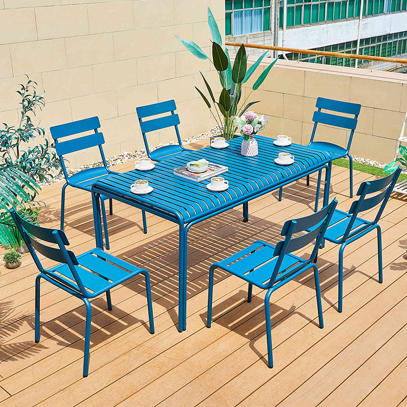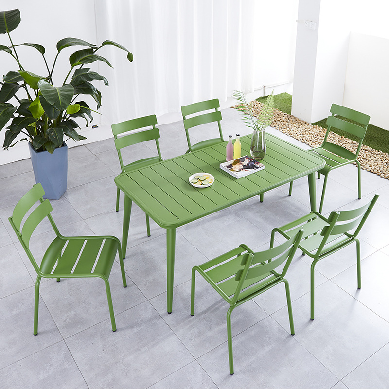 • 조합 21:6 의자 + 150*90 * H73 직사각형 와이드 플레이트 알루미늄 플레이트 테이블