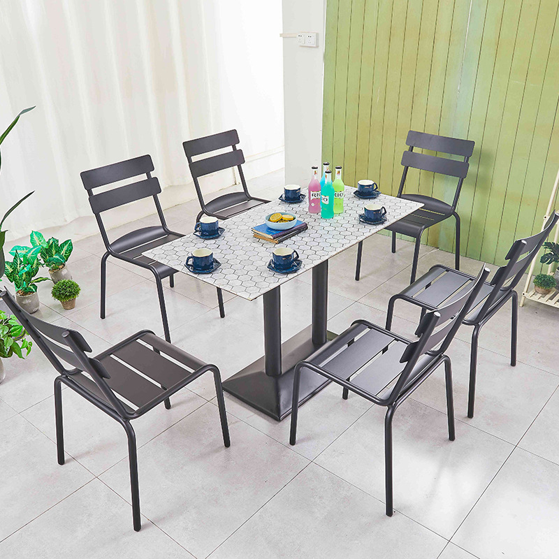 • 조합 20:6 의자 + 150*80 * H76 롱 스퀘어 파인 플레이트 알루미늄 스트립 테이블