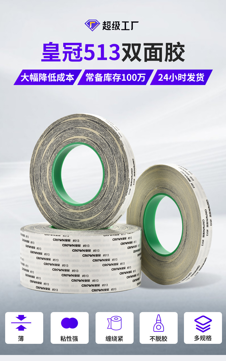 513皇冠双面胶广告铭牌专用双面胶 棉纸超薄强力皇冠513双面胶
