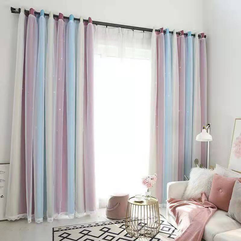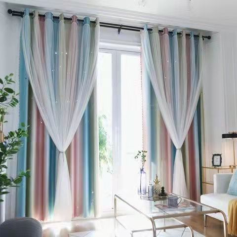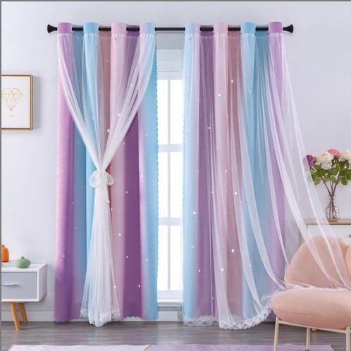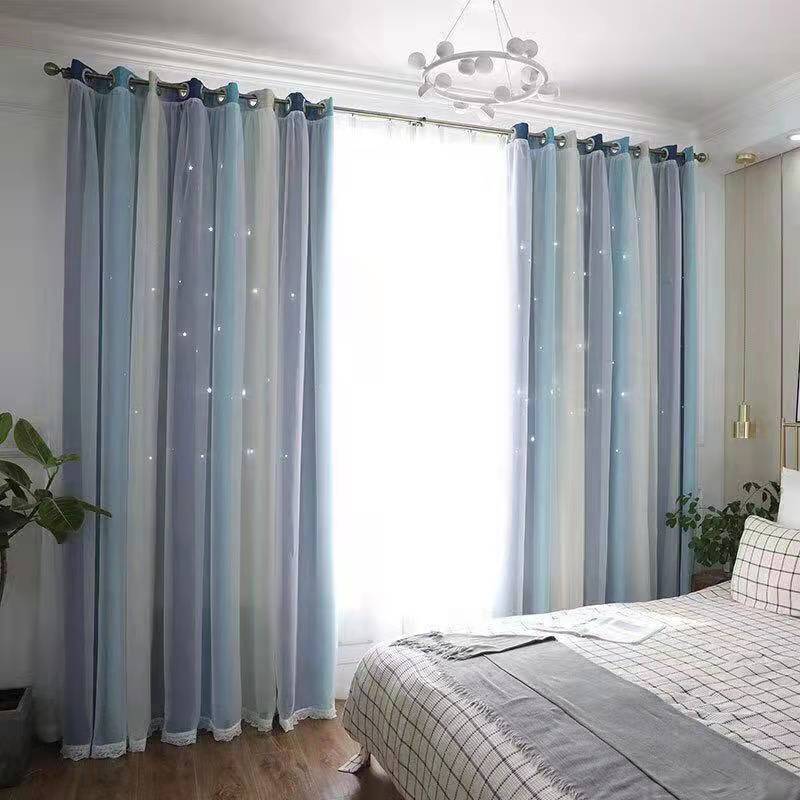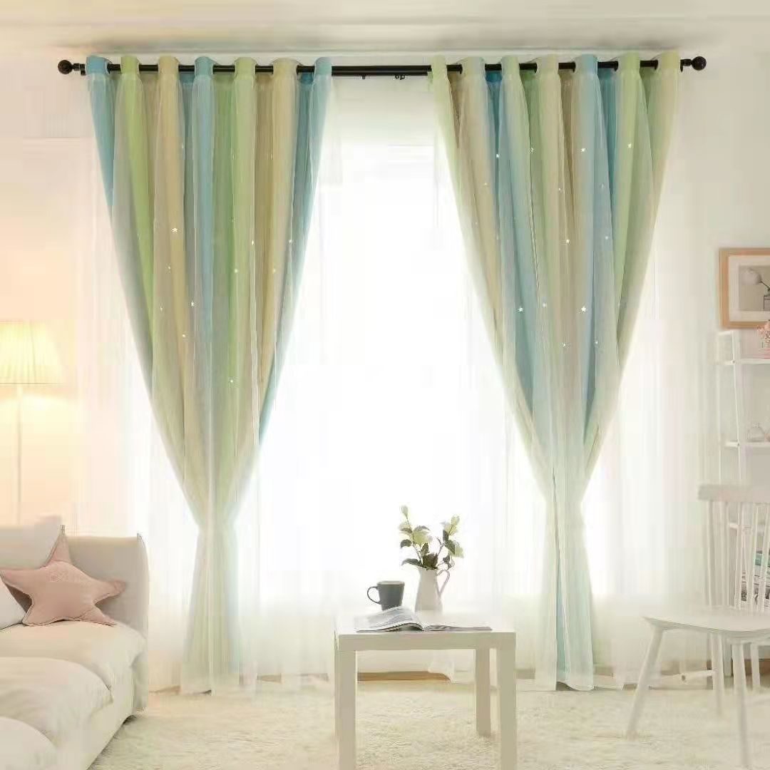 인기있는 천공 그라데이션 중공 스타 프린트 천과 거즈 더블 레이어 차광 커튼 공장 국경 간 대외 무역 커튼 배치
