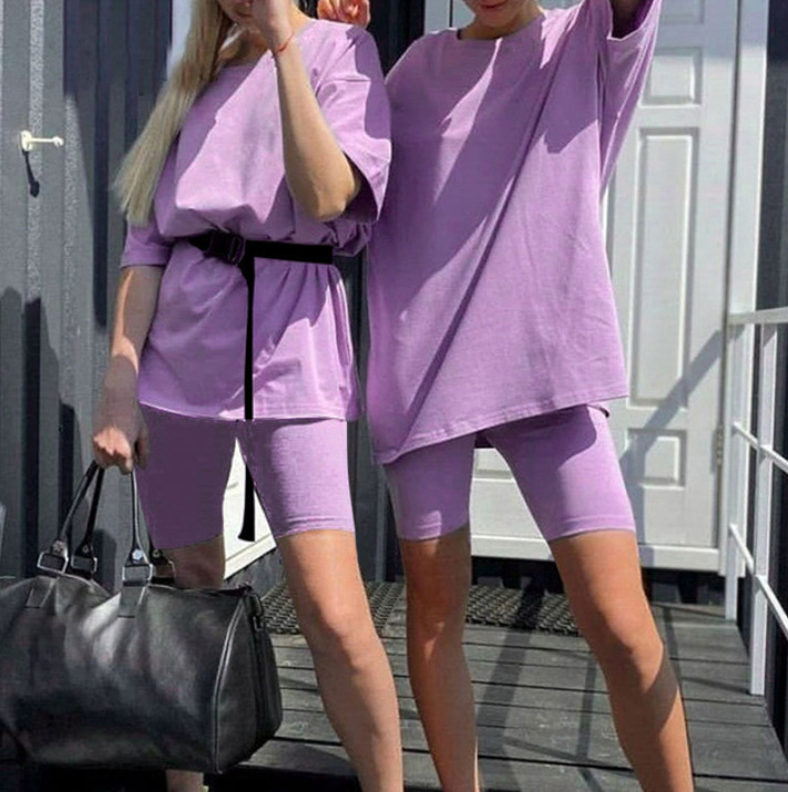 봄과 여름 2020 새로운 핫 여성 투피스 세트 벨트 솔리드 컬러 홈 느슨한 스포츠 패션 캐주얼 세트스토어 가기