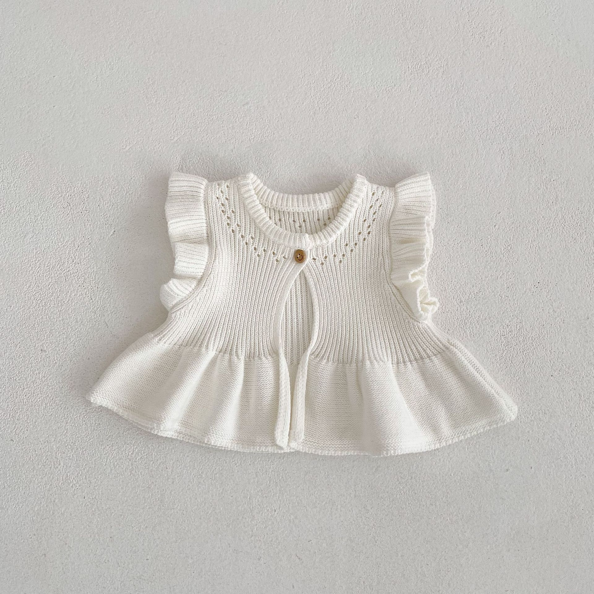 2023 봄 의류 아기 소녀 아기 스웨터 니트 중공 비행 소매 단색 조끼 카디건 코트 다목적스토어 가기