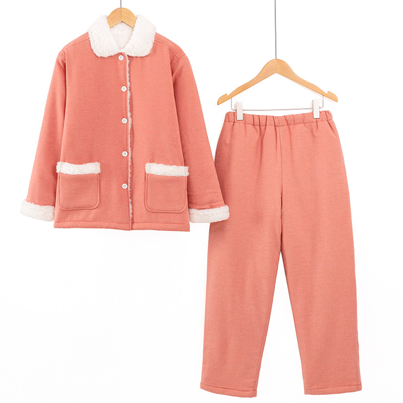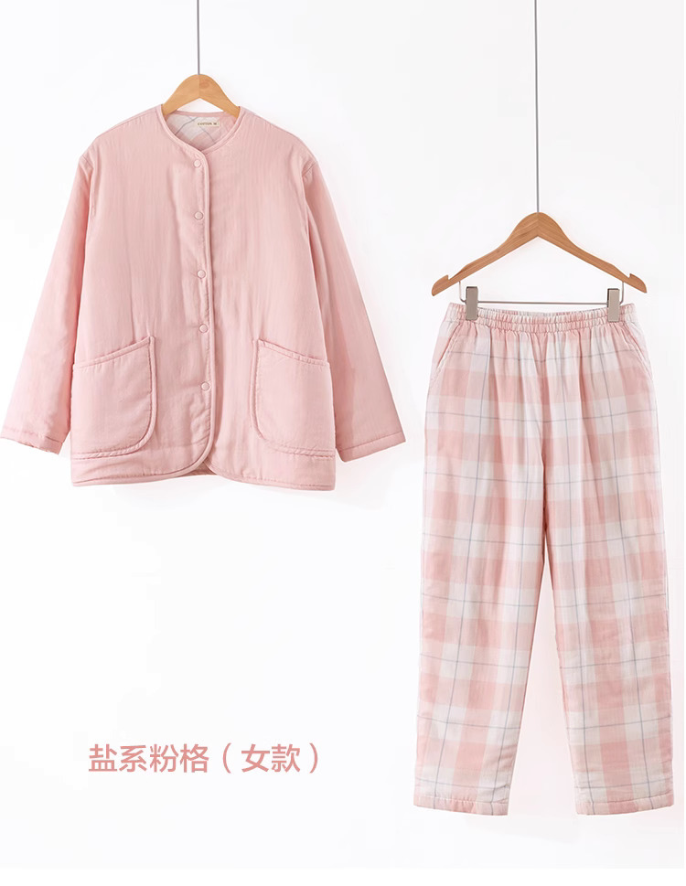 가을 겨울 여성용 일본식 무지 누빔 잠옷, 남성용 이중 거즈 홈웨어 세트, 두껍고 따뜻한 아우터용 면 의류