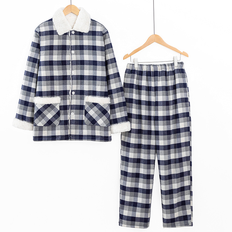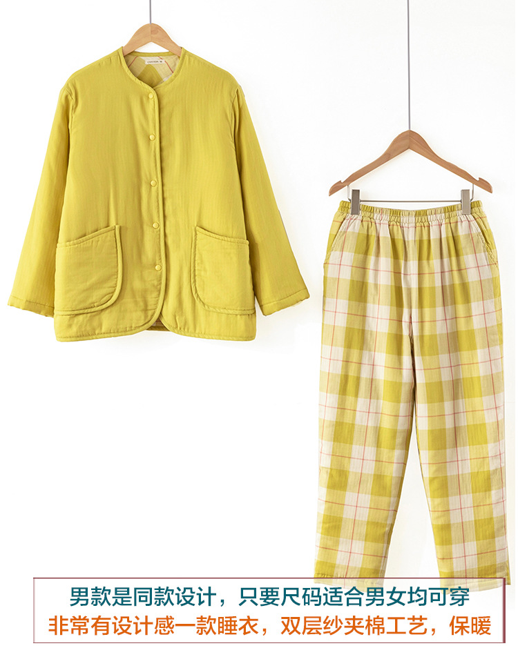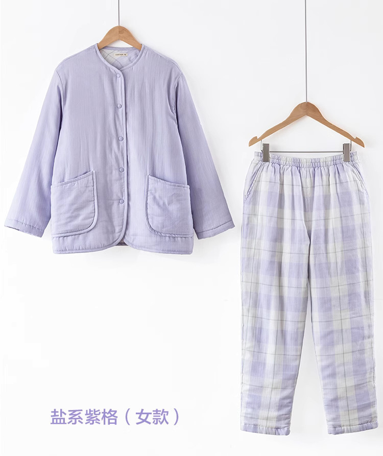 가을 겨울 여성용 일본식 무지 누빔 잠옷, 남성용 이중 거즈 홈웨어 세트, 두껍고 따뜻한 아우터용 면 의류스토어 가기