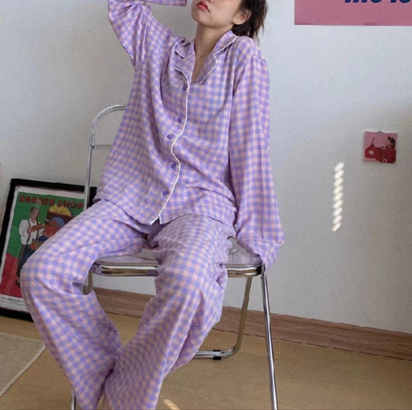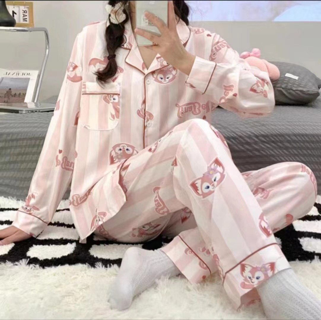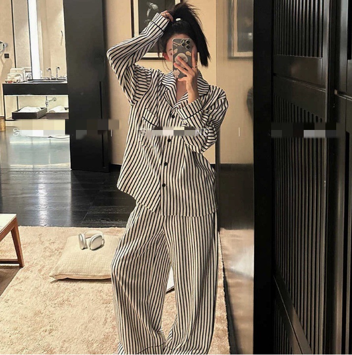 WeChat 온라인 인기있는 잠옷 여성의 가을과 겨울 한국 스타일 스타일 레이스 귀여운 긴 소매 바지 세트 여성의 가정 의류스토어 가기