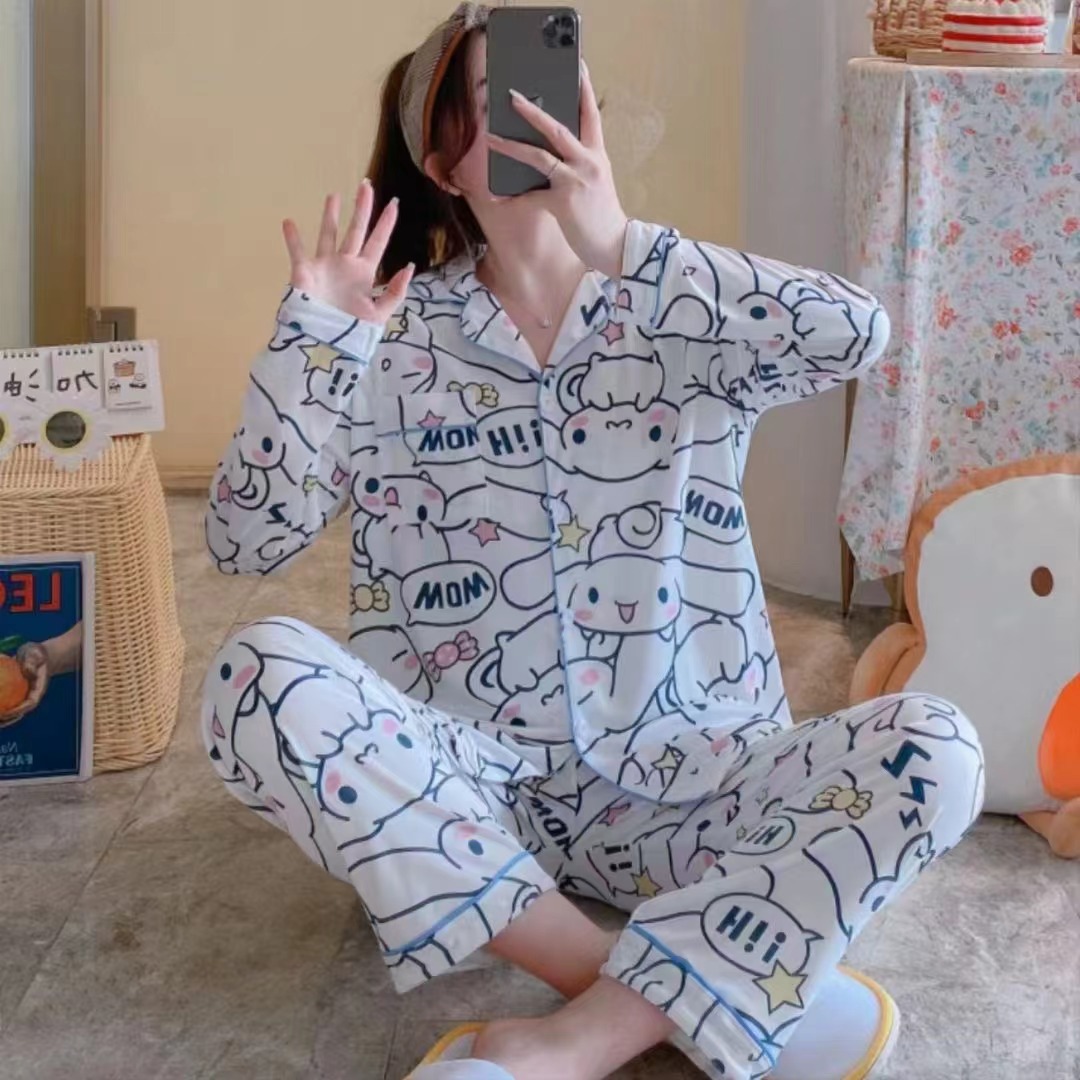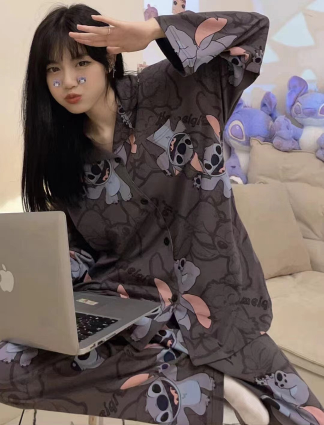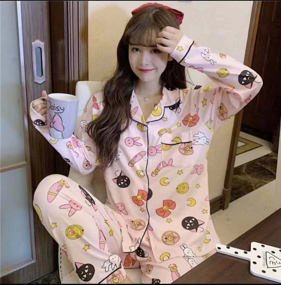 WeChat 온라인 인기있는 잠옷 여성의 가을과 겨울 한국 스타일 스타일 레이스 귀여운 긴 소매 바지 세트 여성의 가정 의류스토어 가기