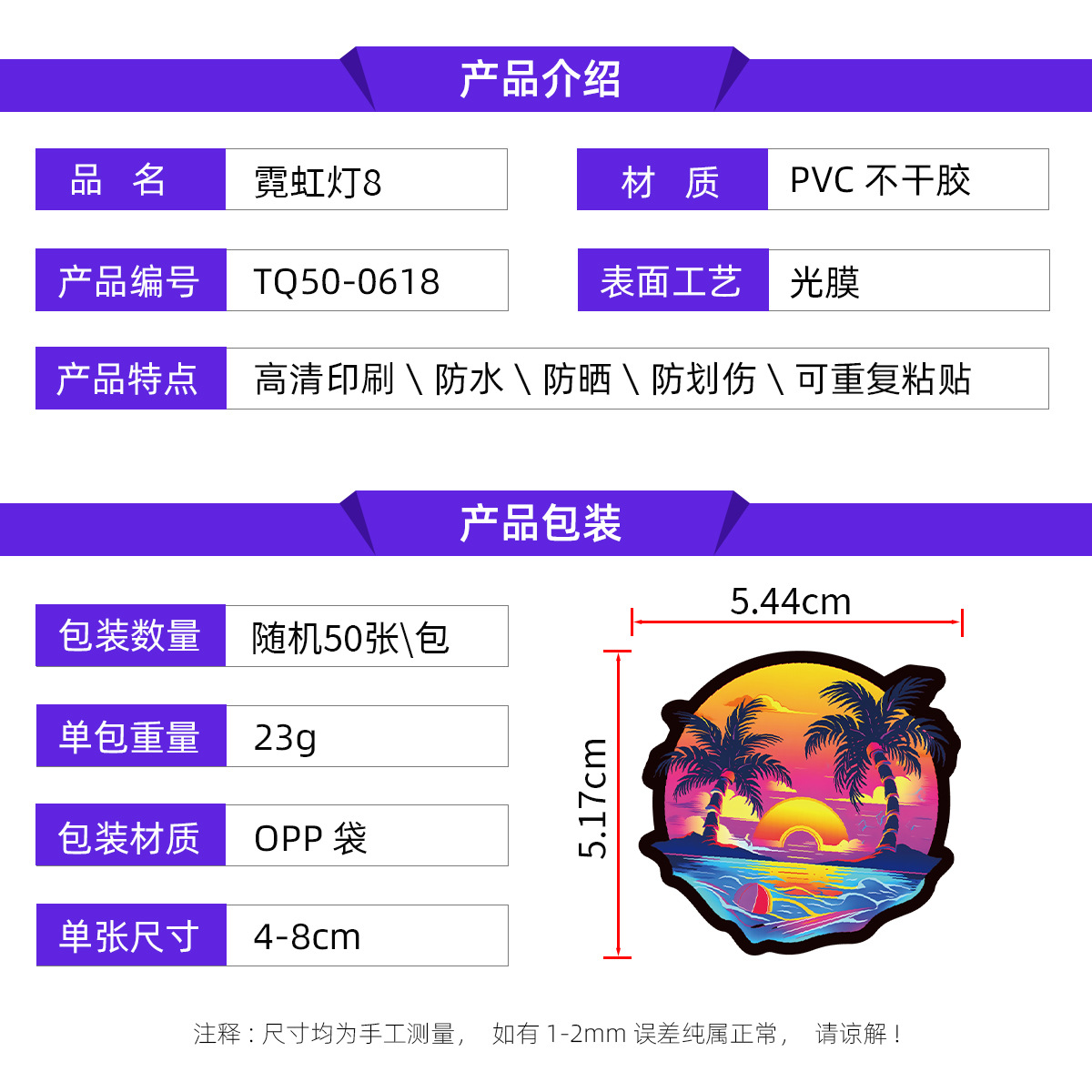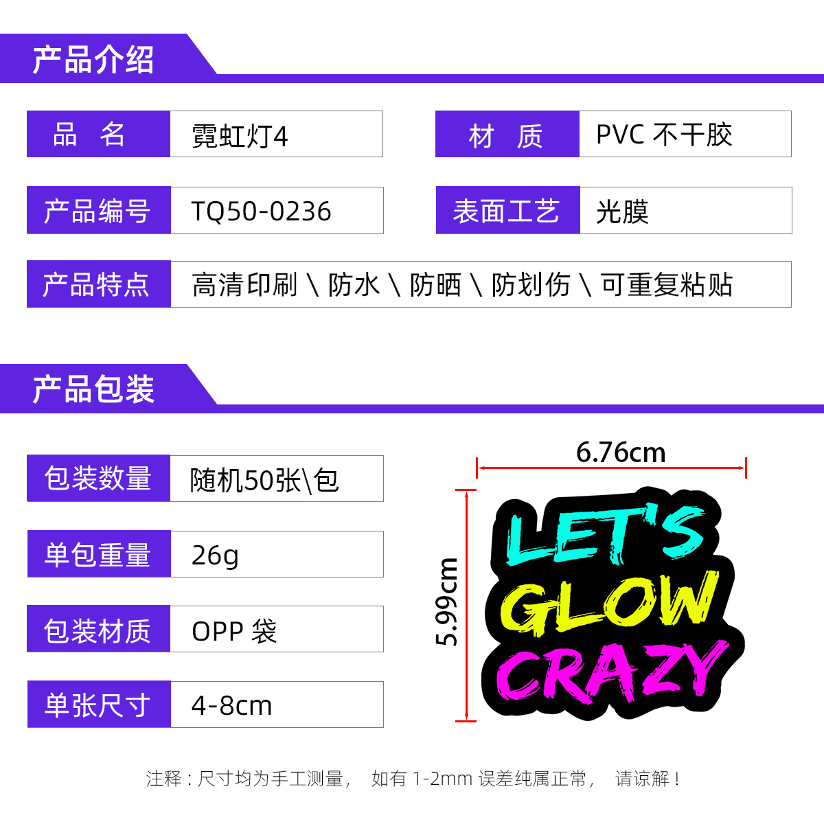 50/100/200 네온 스타일 낙서 스티커 휴대 전화 컴퓨터 노트북 물 컵 장식 스티커 방수
