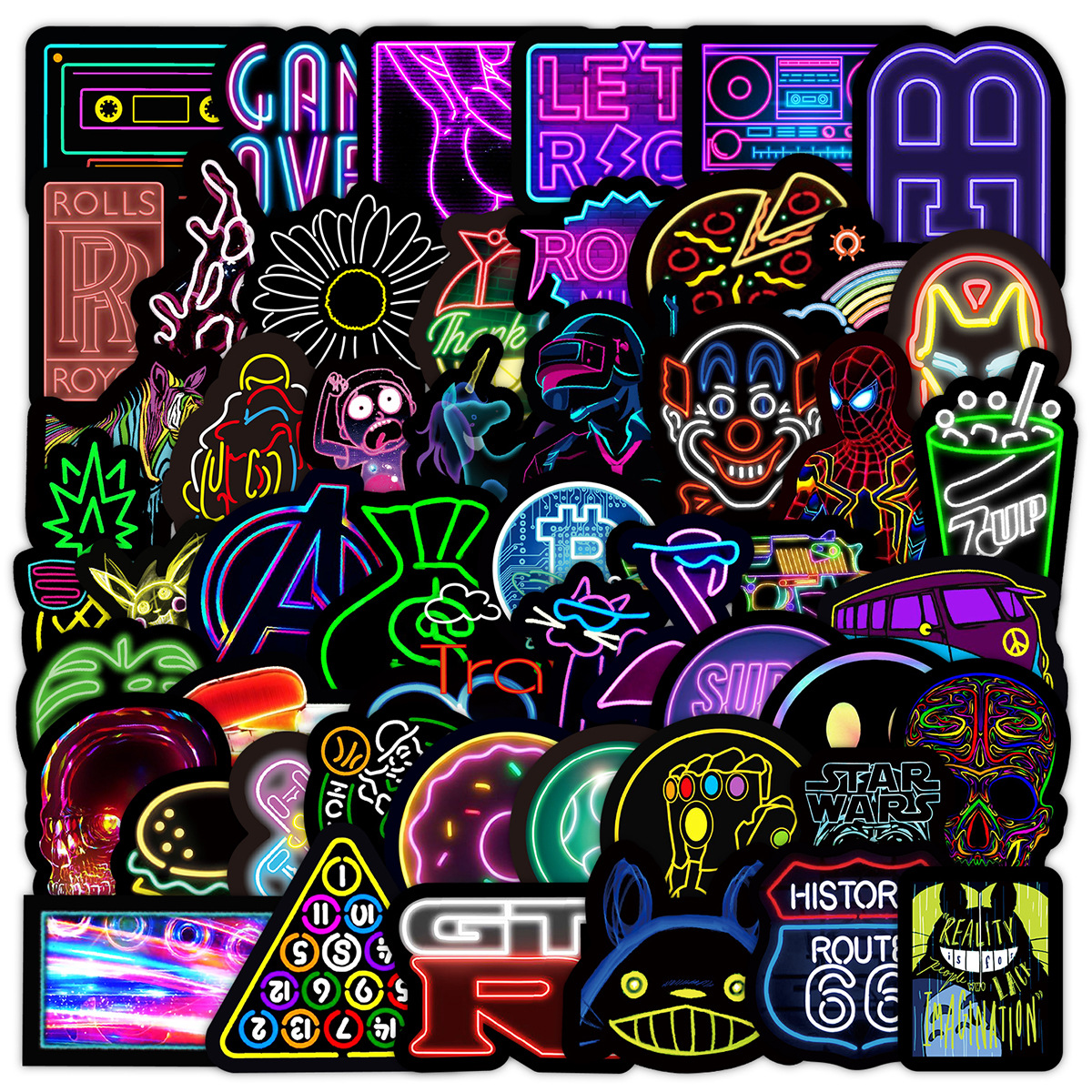 50/100/200 네온 스타일 낙서 스티커 휴대 전화 컴퓨터 노트북 물 컵 장식 스티커 방수스토어 가기