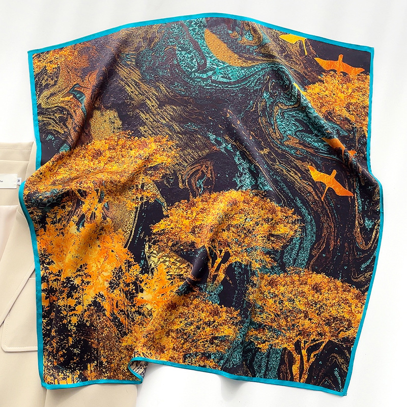 2021 새로운 꽃 패턴 뽕나무 실크 작은 스카프 패션 장식 따뜻한 전문 작은 스카프 재고 크로스-국경 여성스토어 가기