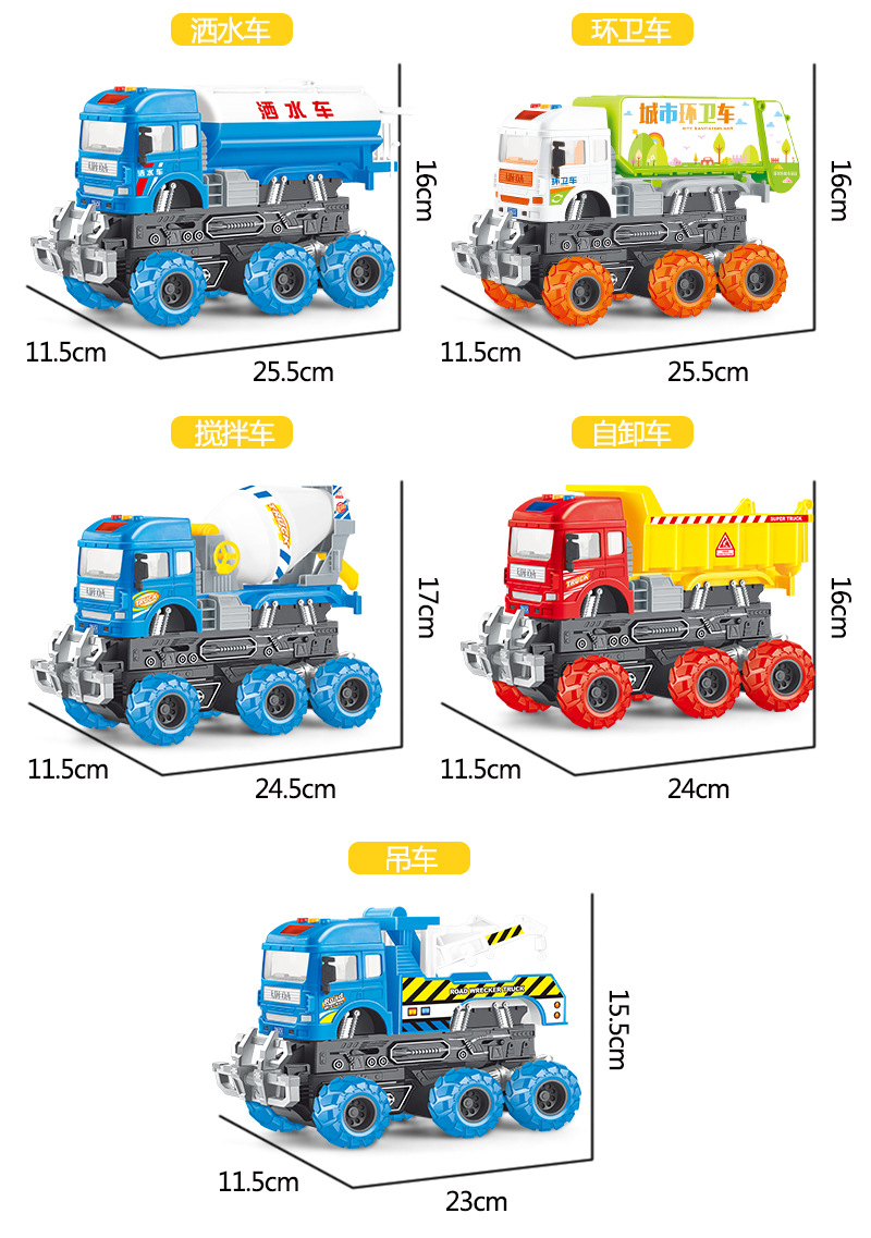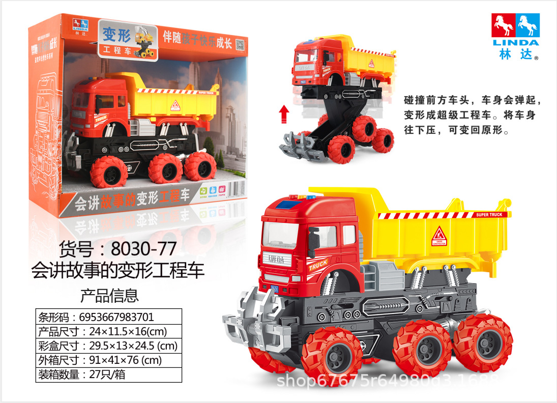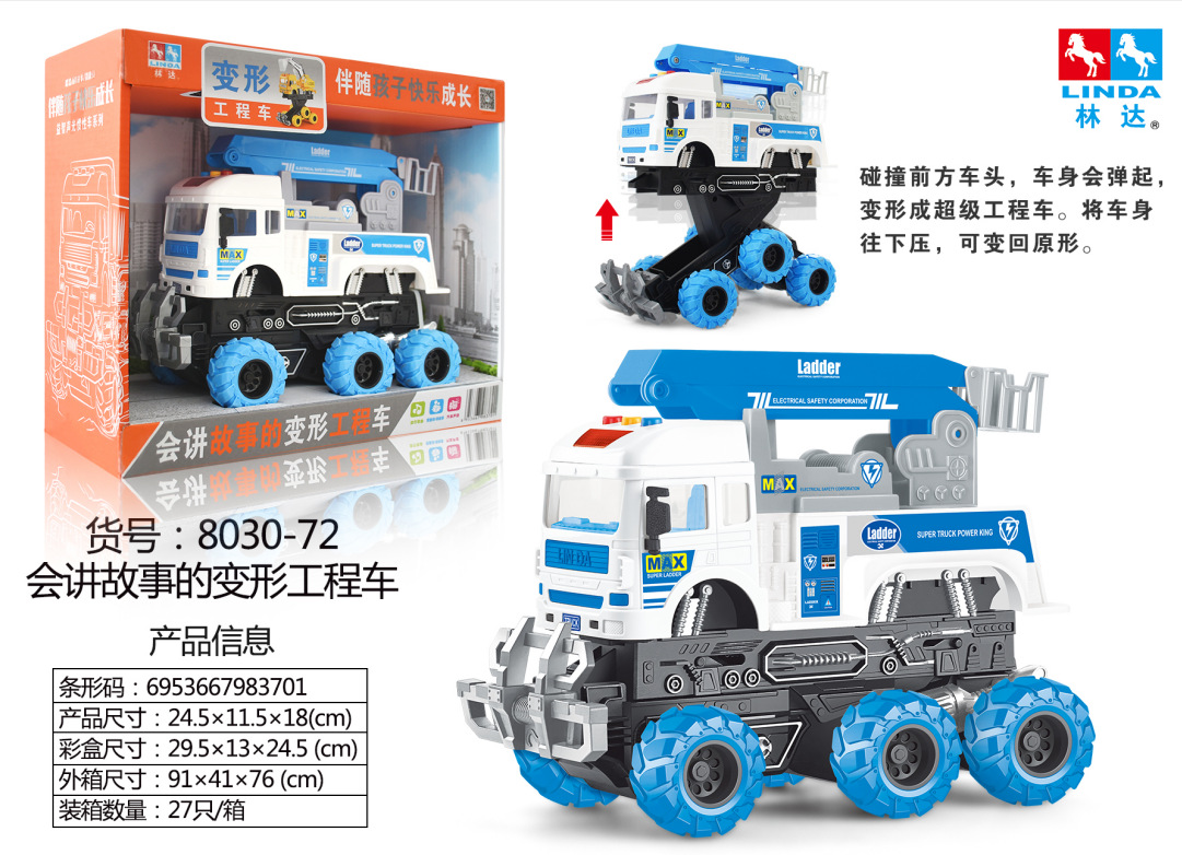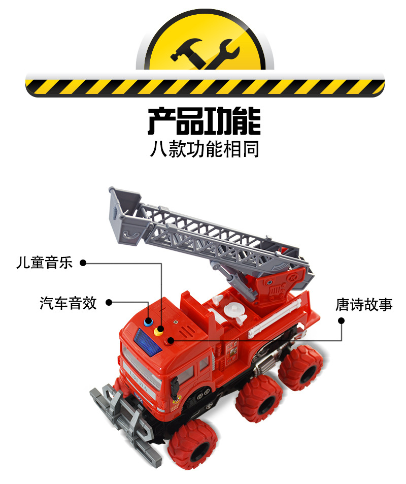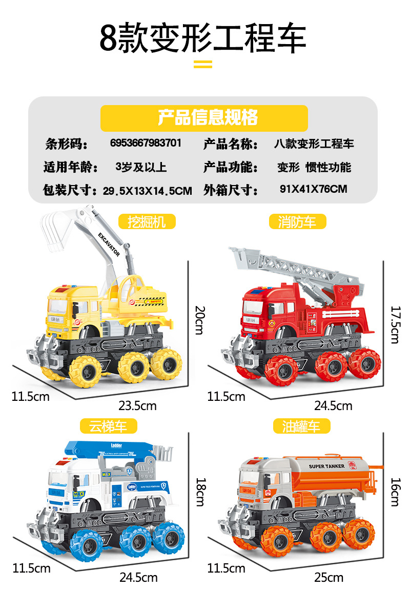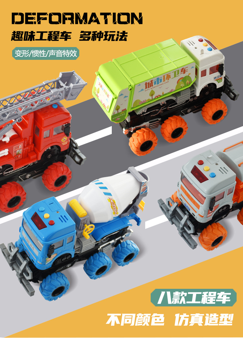 린다 8종 변신 엔지니어링 차량 남아 조기 교육 교구 음악 믹서 트럭 사다리차 소방차 완전 세트 장난감 차량
