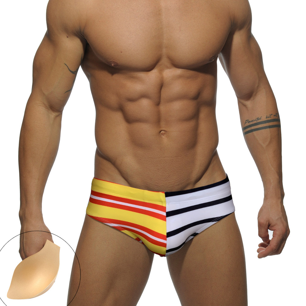 JESSBORN 남성용 삼각형 수영 트렁크 패션 섹시한 스트라이프 컵 달리기 방지 해변 온천 스포츠 수영복