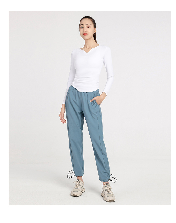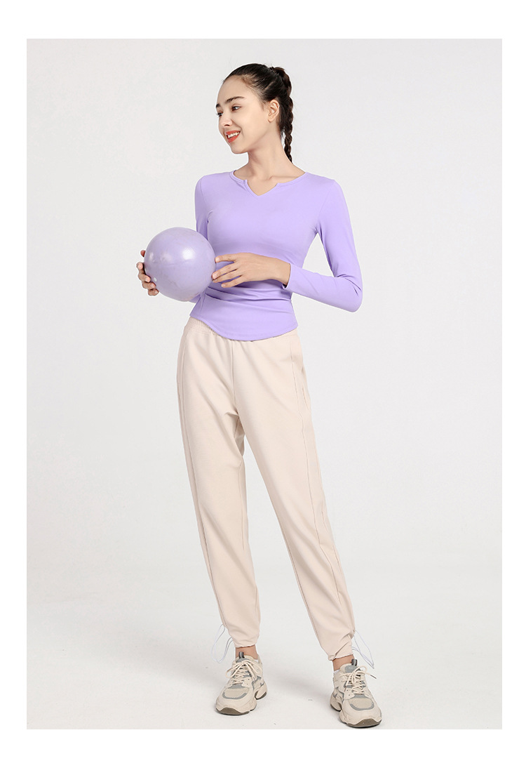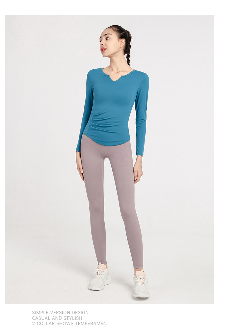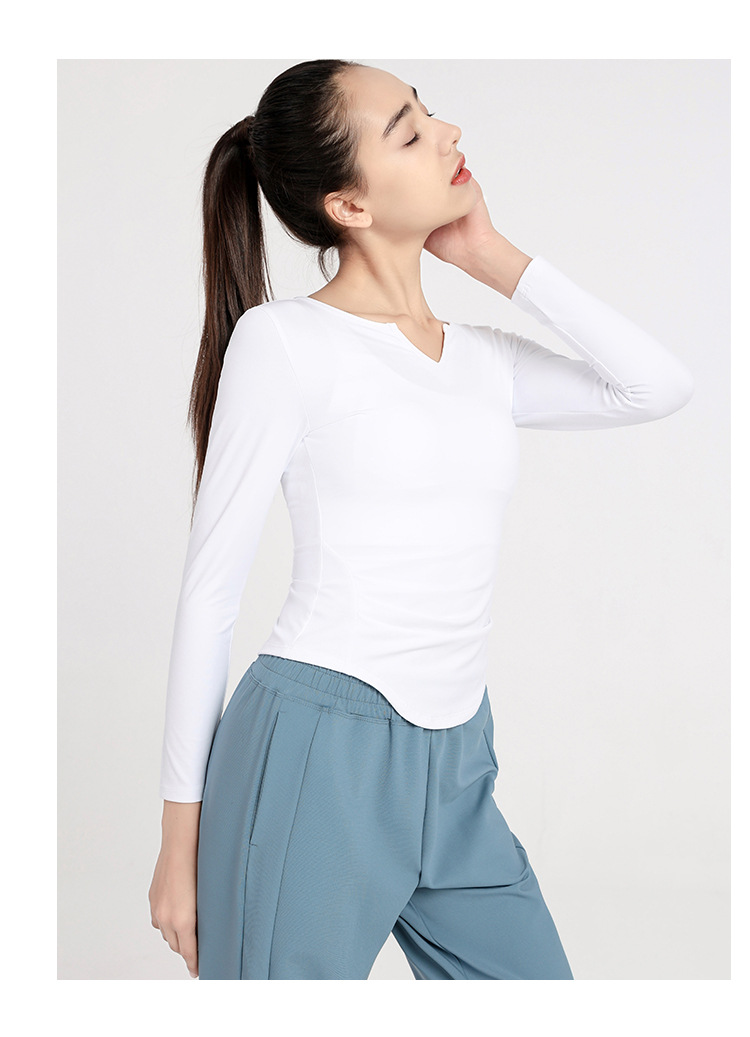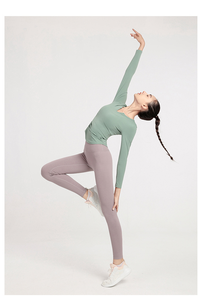 새로운 유럽 및 미국 스포츠 탑 여성용 긴팔 타이트한 요가 의류 실행 캐주얼 속건 의류 슬림핏 섹시한 피트니스 의류