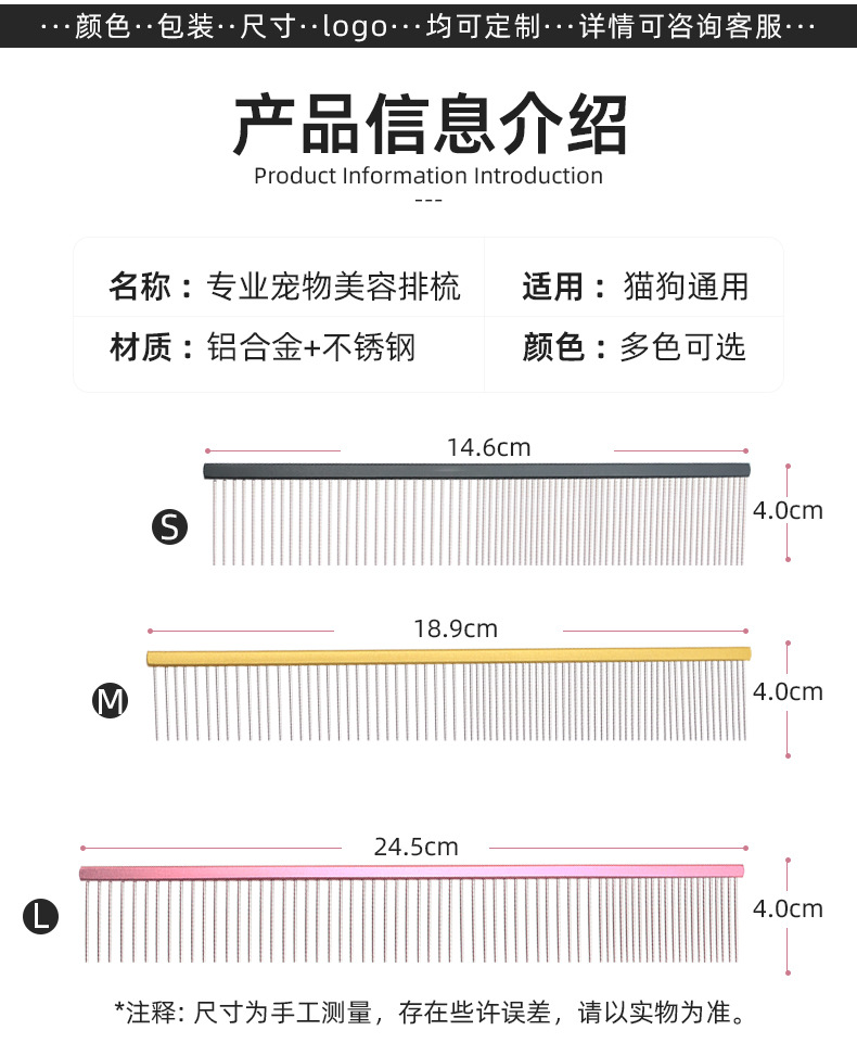 애완동물 빗, 스테인리스 바늘 빗, 매듭을 풀어주는 미용사 특수 빗, 고양이와 강아지를 위한 알루미늄 빗, 애완동물 용품스토어 가기