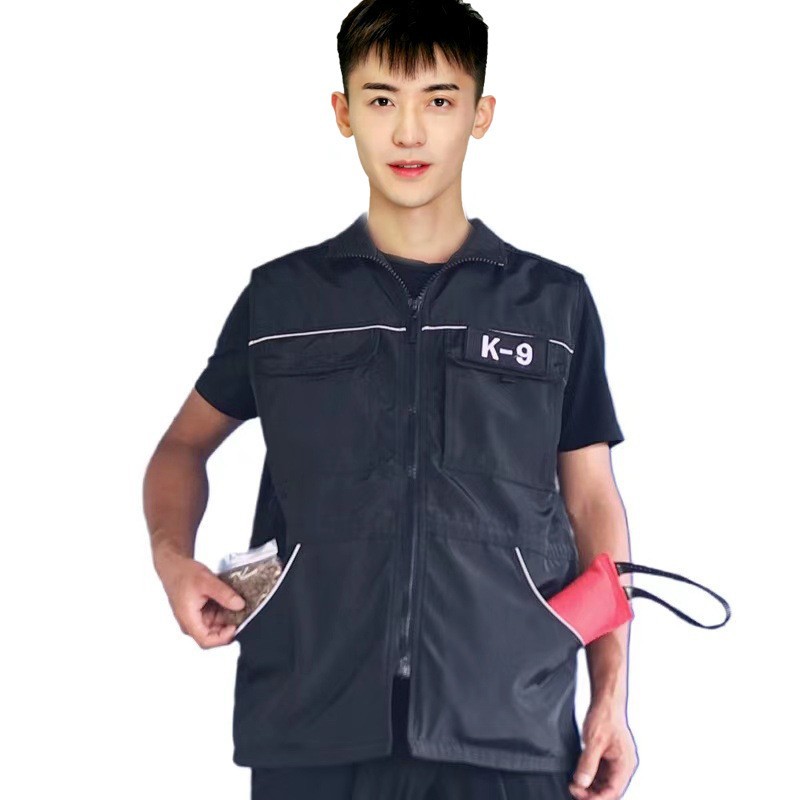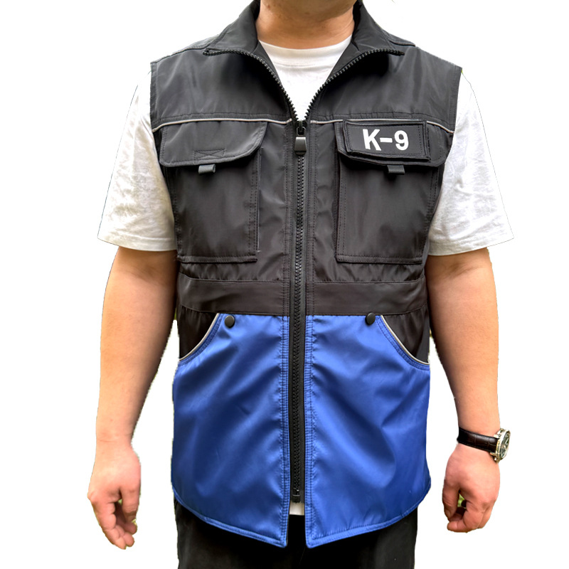 材质说明:透气尼龙布参考进口版型腰部有抽绳可以束腰适合各类体型 前 面一共四个口袋 后面一个大通用口袋可容纳各种训犬用品防水 不沾毛透气布料制成,是训犬师的不二选择