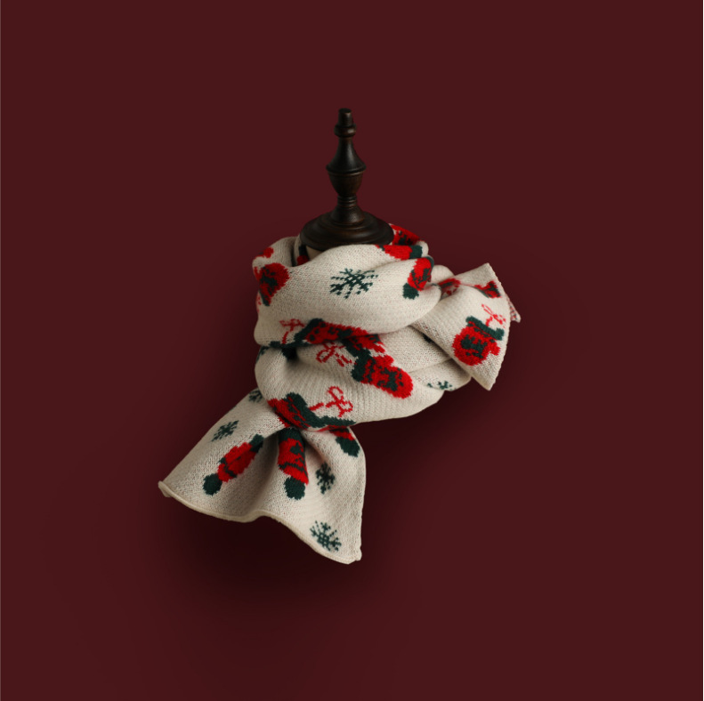 모든 매치 크리스마스 니트 울 레드 스카프 새끼 사슴 엘크 인쇄 눈송이 따뜻한 개인 커플 스카프 학생 스카프