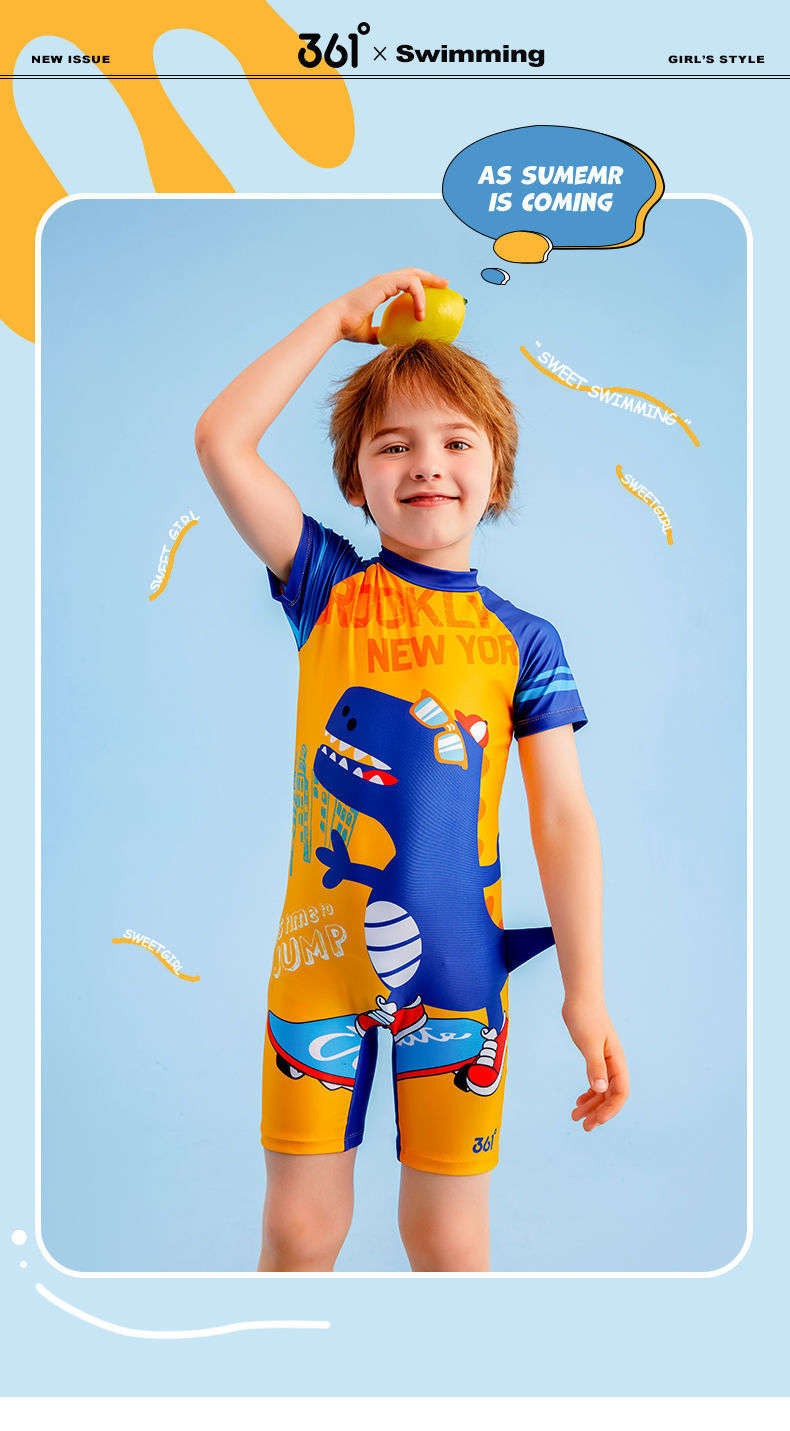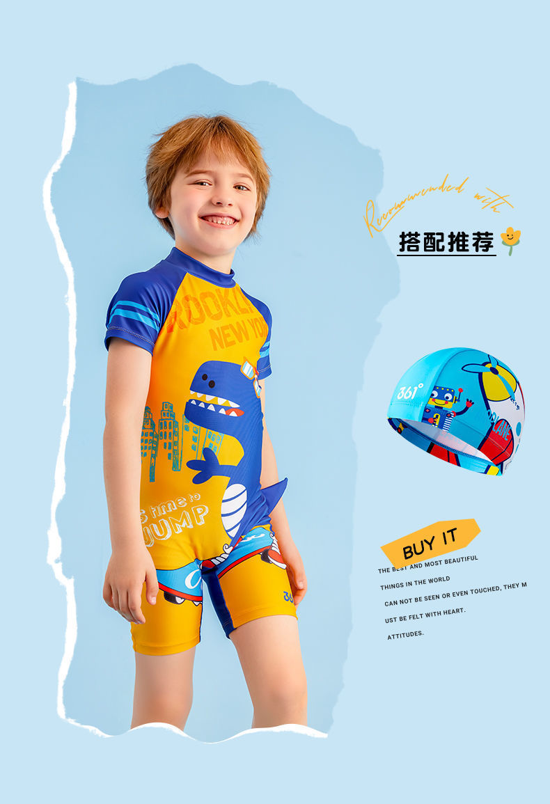 361 어린이 수영복 원피스 공룡 소년 중간 및 큰 어린이 수영복 속건 통기성 귀여운 만화 인쇄스토어 가기