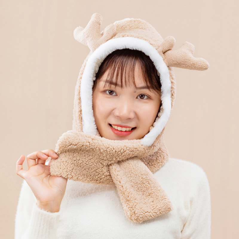 모자 스카프 장갑 3 종 세트 겨울 귀여운 뿔 더블 플러시 따뜻한 학생 후드 스카프 세트