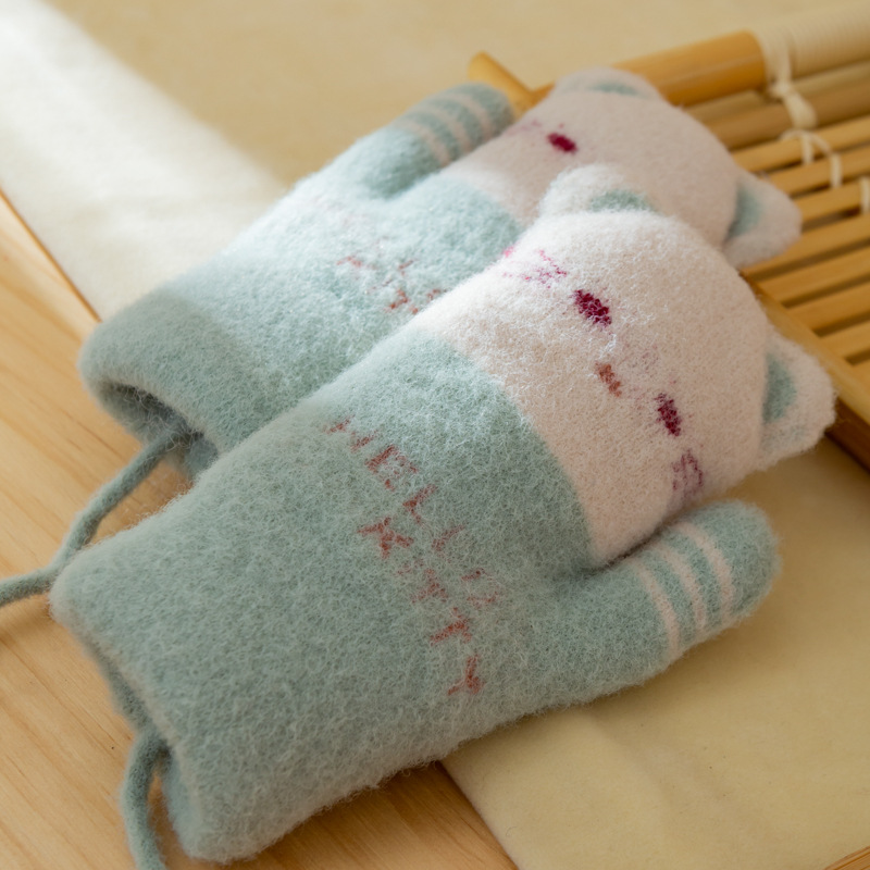 어린이 장갑 따뜻한 겨울 2-9 세 아기 소년과 소녀 기모 두꺼운 귀여운 만화 목 가방 손가락 장갑
