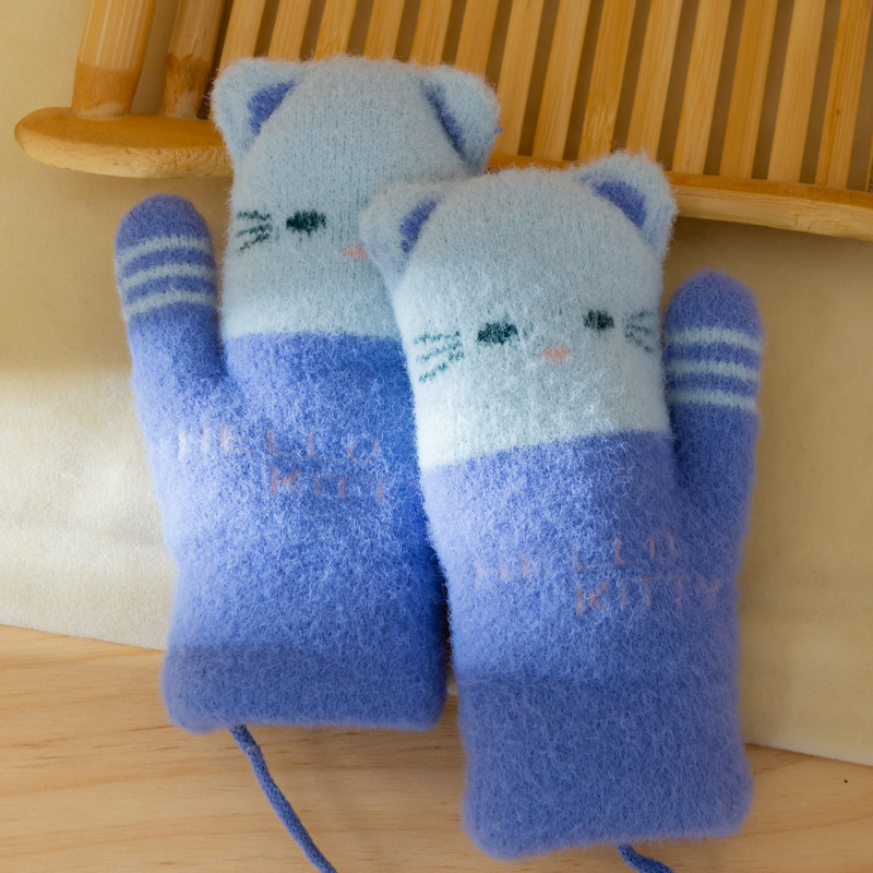 어린이 장갑 따뜻한 겨울 2-9 세 아기 소년과 소녀 기모 두꺼운 귀여운 만화 목 가방 손가락 장갑스토어 가기