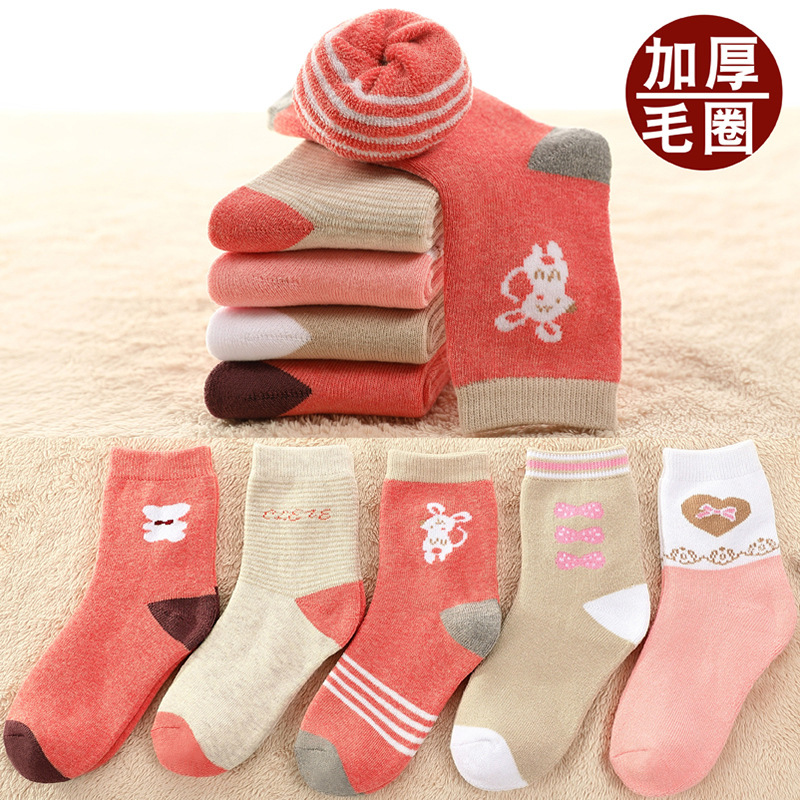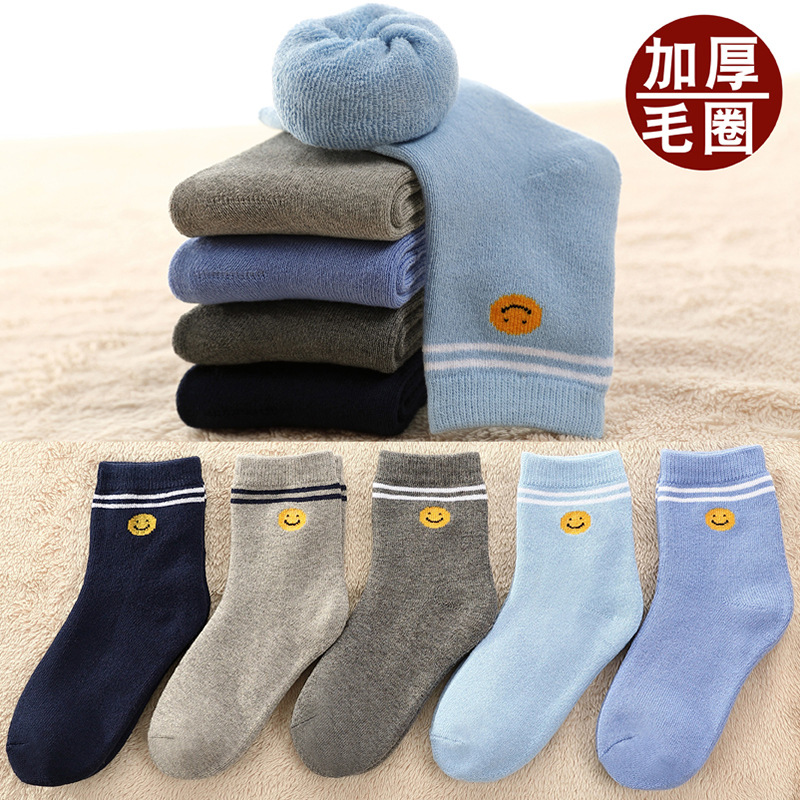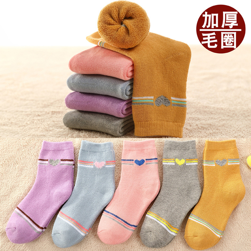 어린이 양말 큰 어린이 두꺼운 기모 따뜻한 테리 양말 단색면 양말 소년과 소녀 어린이 수건 양말스토어 가기