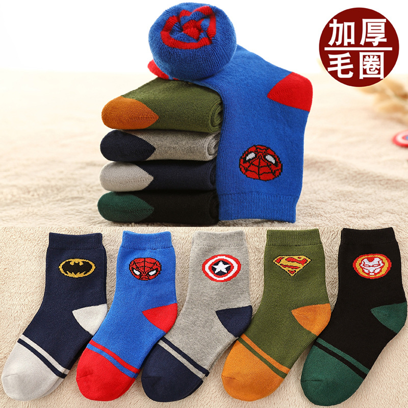 어린이 양말 큰 어린이 두꺼운 기모 따뜻한 테리 양말 단색면 양말 소년과 소녀 어린이 수건 양말