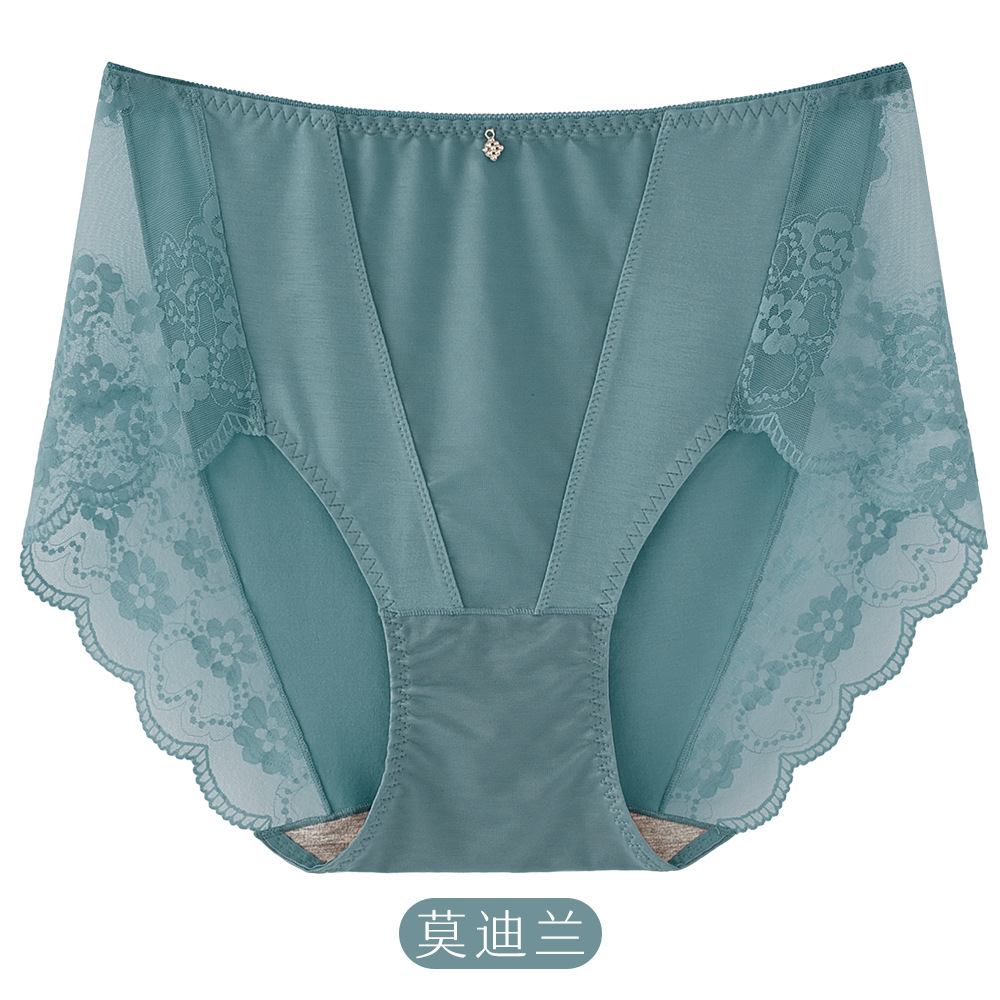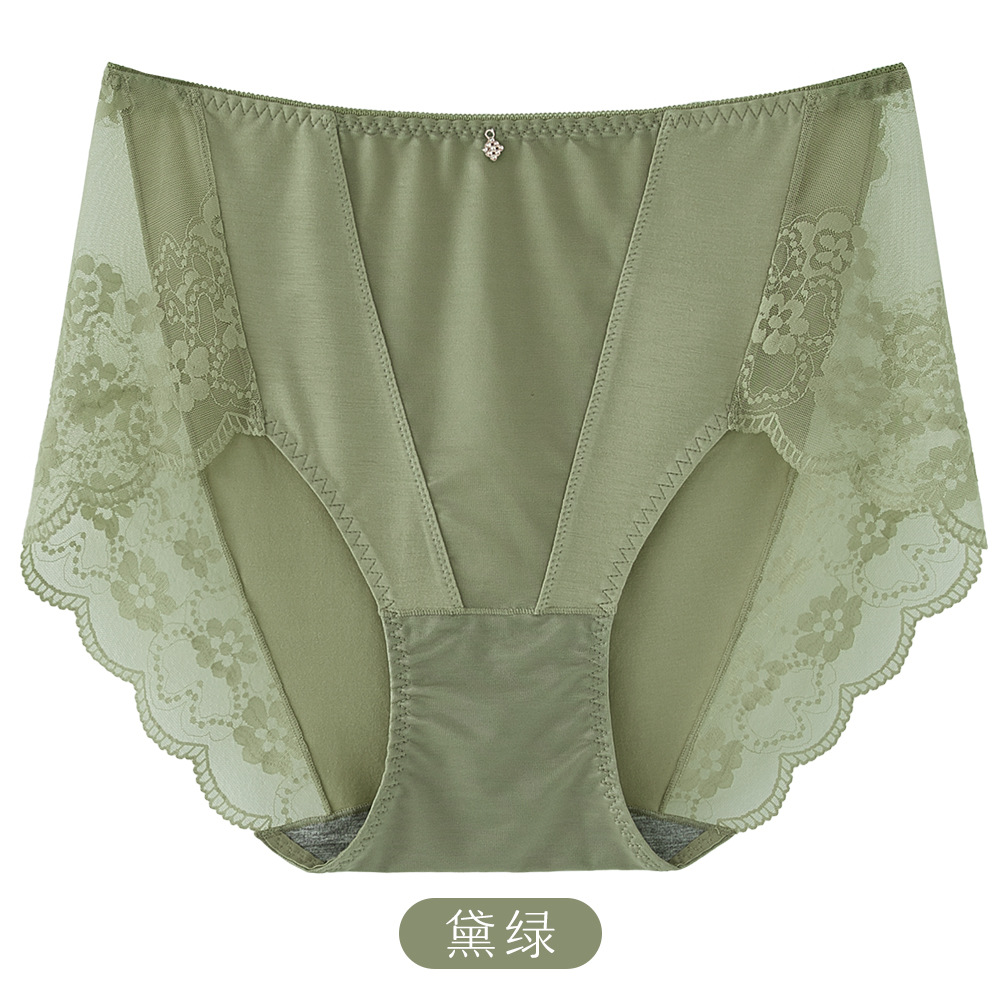 새로운 플러스 사이즈 모달 스티칭 레이스 팬티 숙녀 중간 높은 허리 브리프 섹시 통통녀 바지 도매스토어 가기