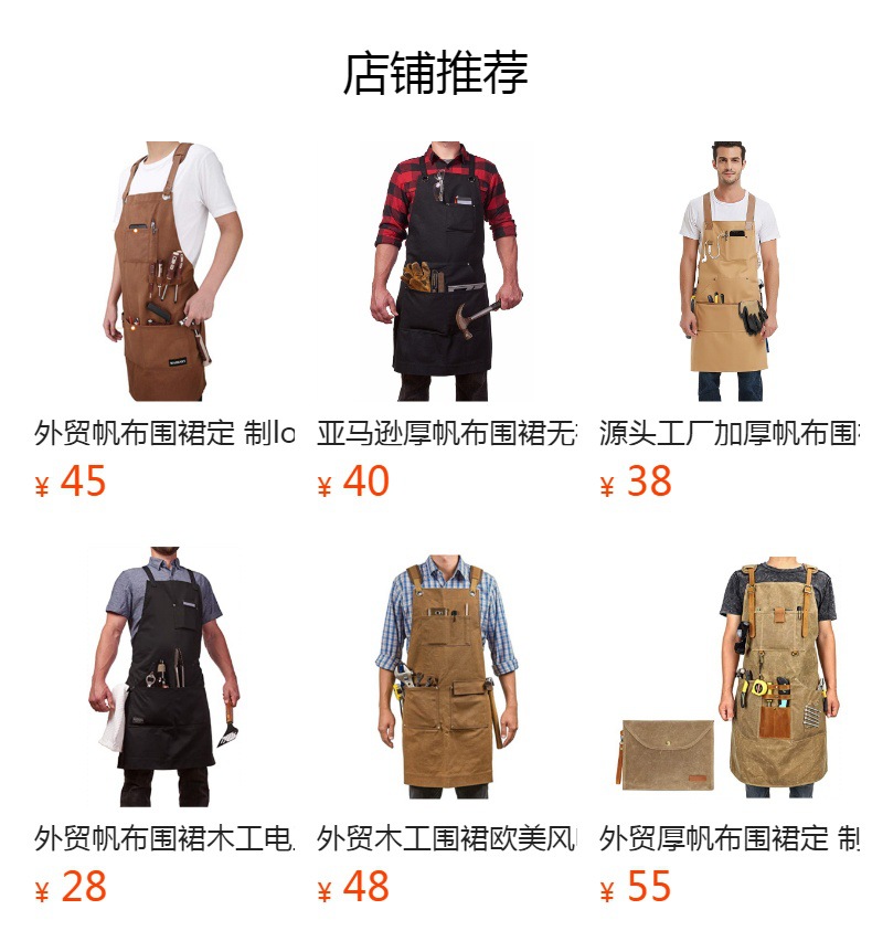 대외 무역 두꺼운 캔버스 앞치마 목공 전기 기술자 커피 숍 작업 옷 홈 바베큐 주방 앞치마 도매스토어 가기