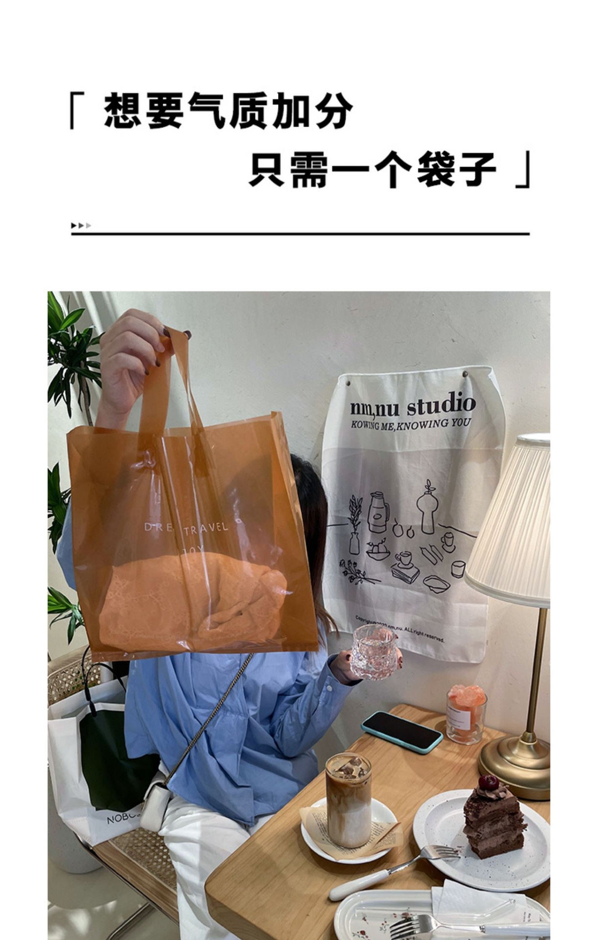 의류 매장 투명 핸드백 쇼핑 포장 가방 높은 감각 어린이 의류 가방 의류 포장 비닐 봉투 도매스토어 가기