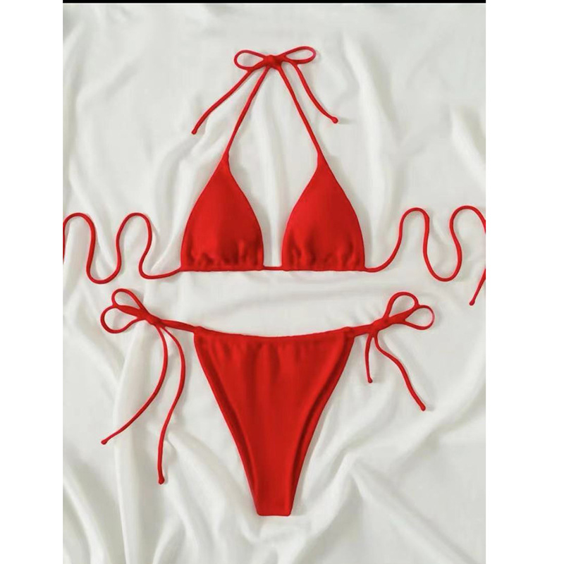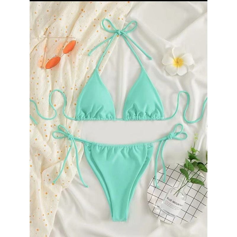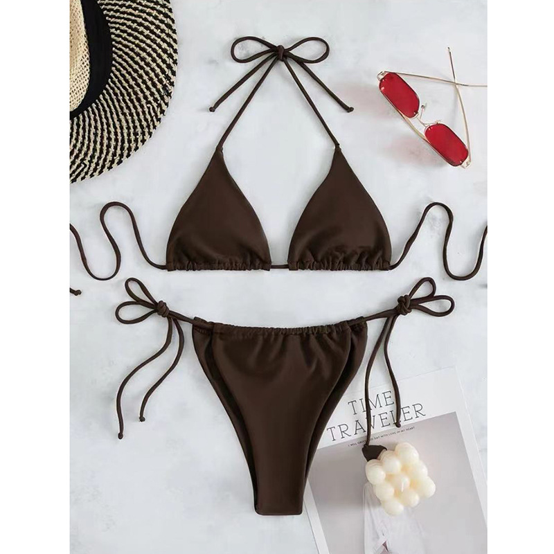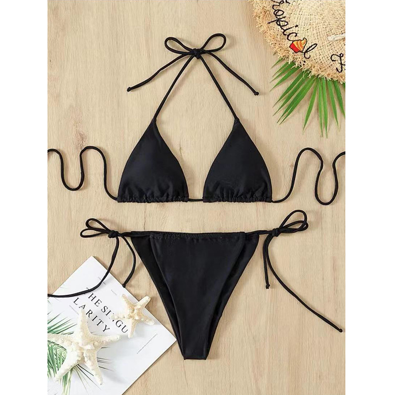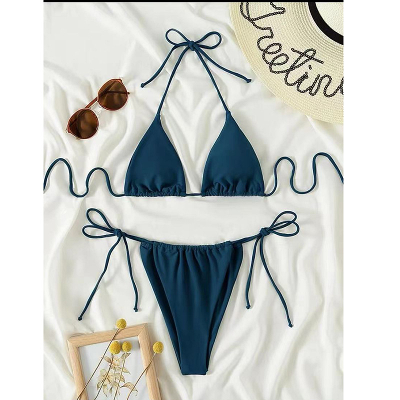 2022 유럽과 미국의 섹시한 삼각형 비키니 아마존 AliExpress 새로운 단색 스트랩 수영복 등이없는 수영복스토어 가기