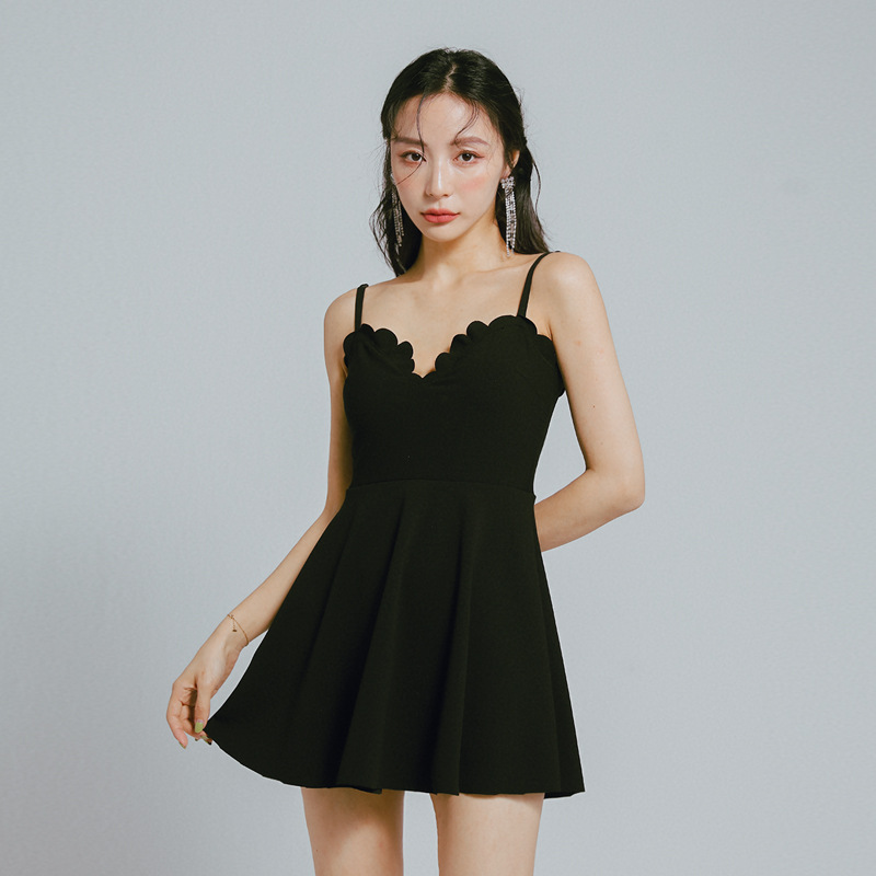 한국인즈 스타일 보수적으로 슬림 커버 스커트 블랙 심플 슬링 작은 가슴 모여 학생들을위한 온천 수영복스토어 가기