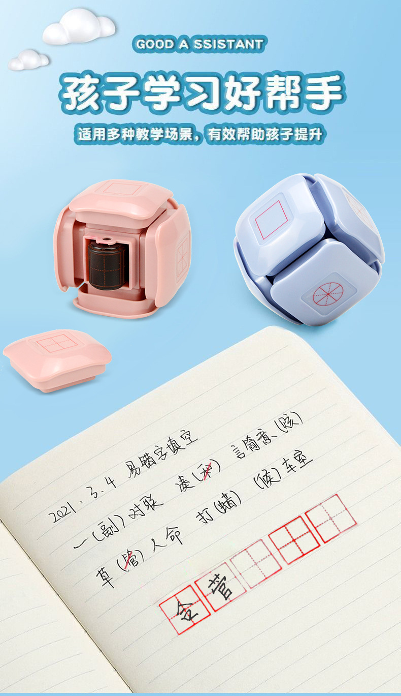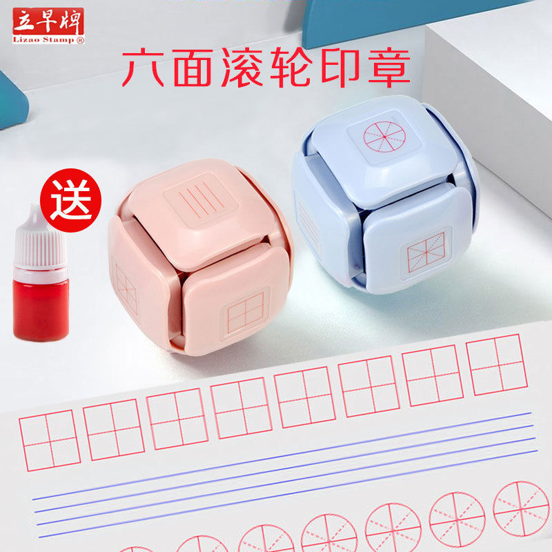 리자오 중국어 숙제 육면체 병음 그리드 롤러 스탬프 학생 문구 교사 교정 스탬프스토어 가기
