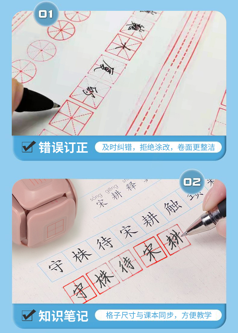• 롤러 병음 Tianzi 그리드 인쇄 어린이 - 라이트 핑크